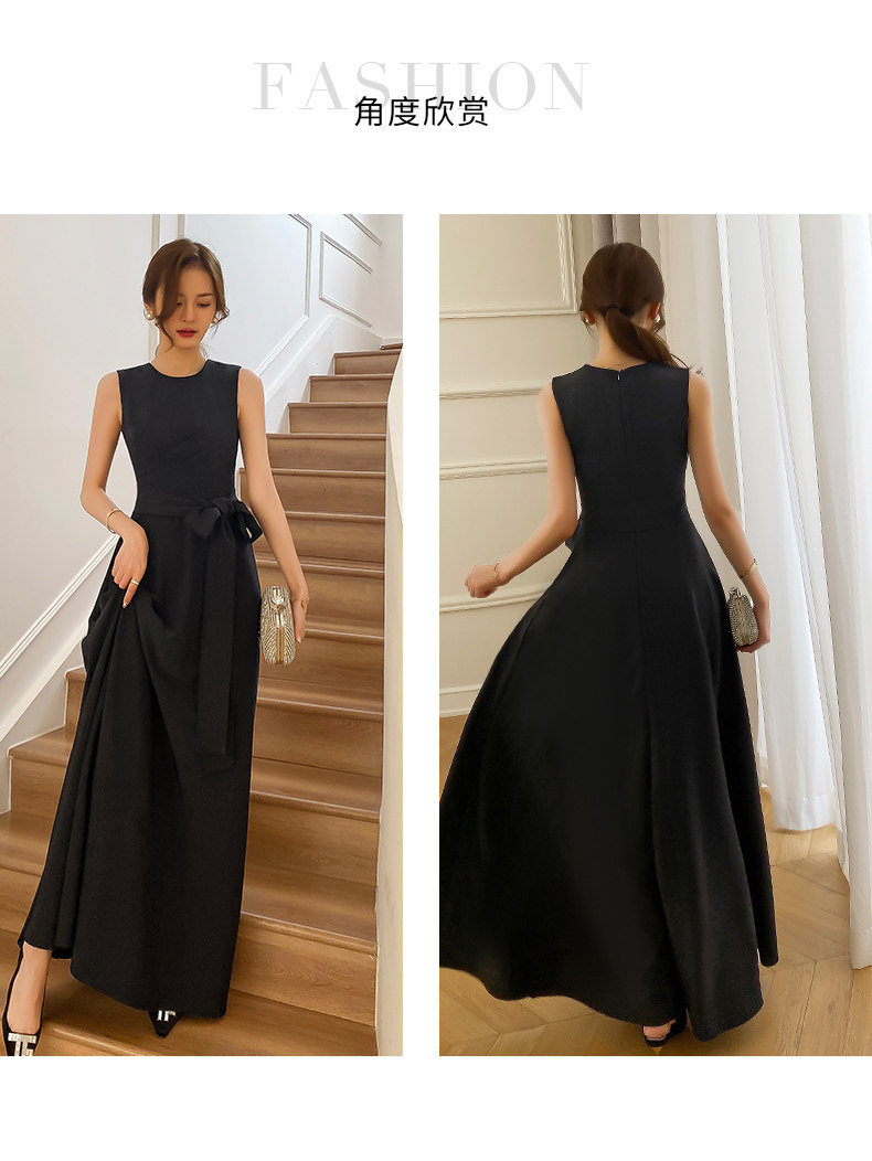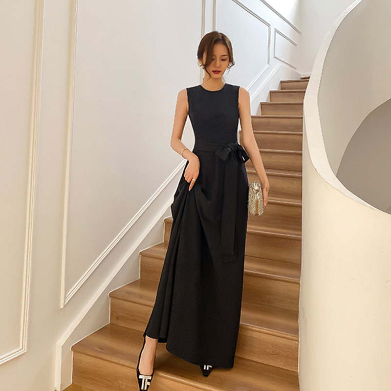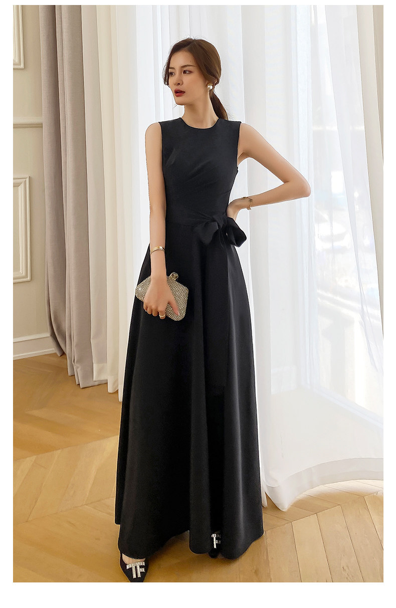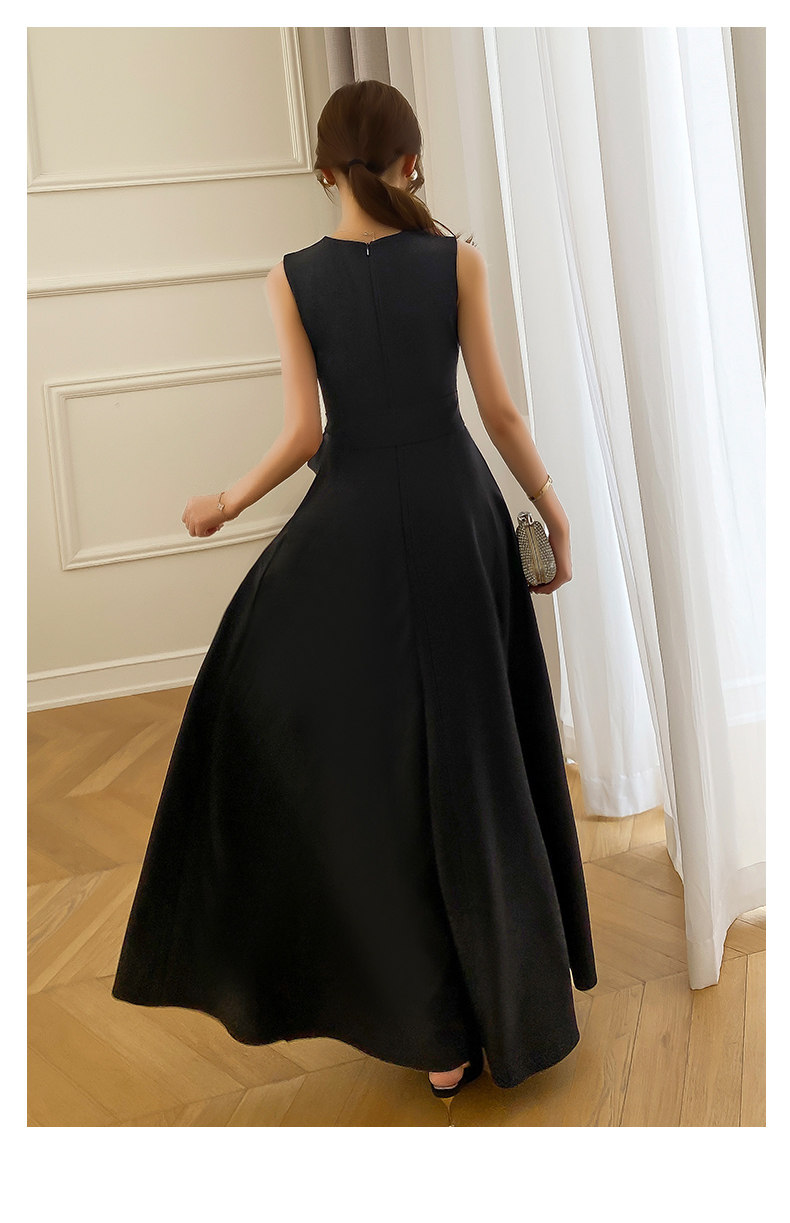 Черное коктейльное банкетное приталенное длинное вечернее платье без рукавов
