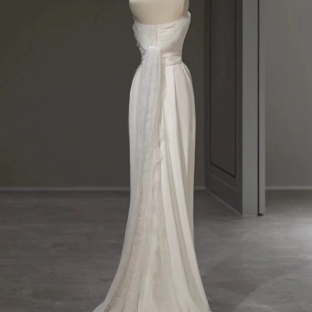 Летнее свадебное платье, элегантный топ без лямок для невесты, французский стиль, крой «рыбий хвост», кружевное платье