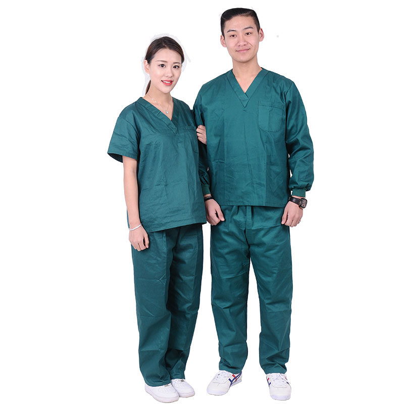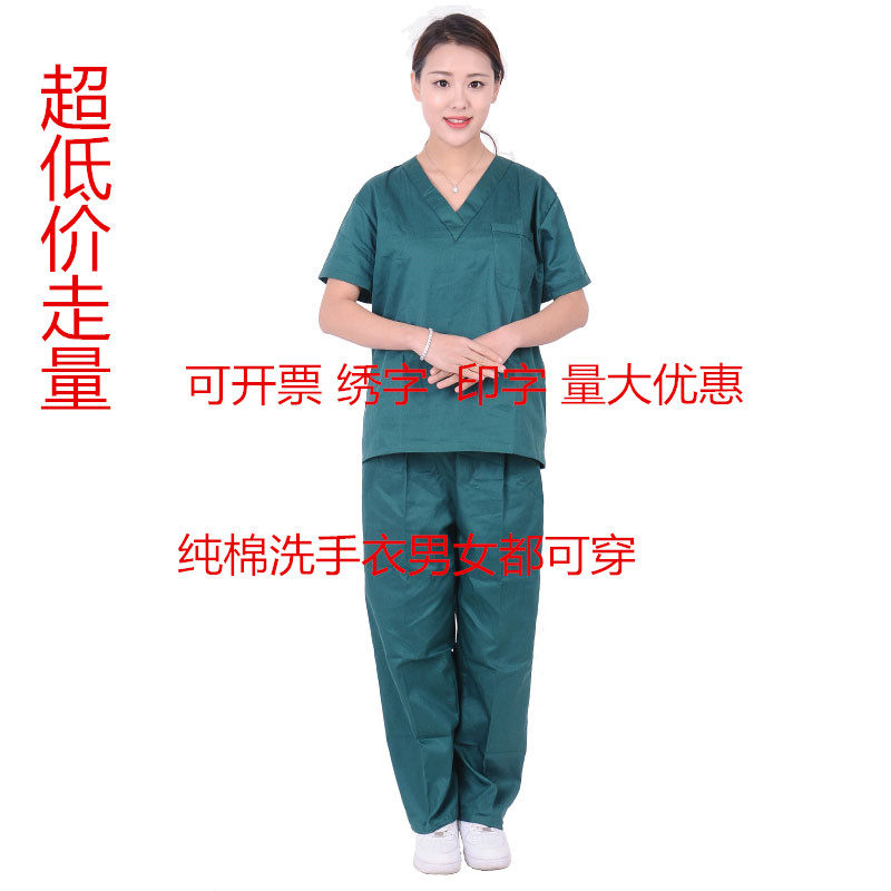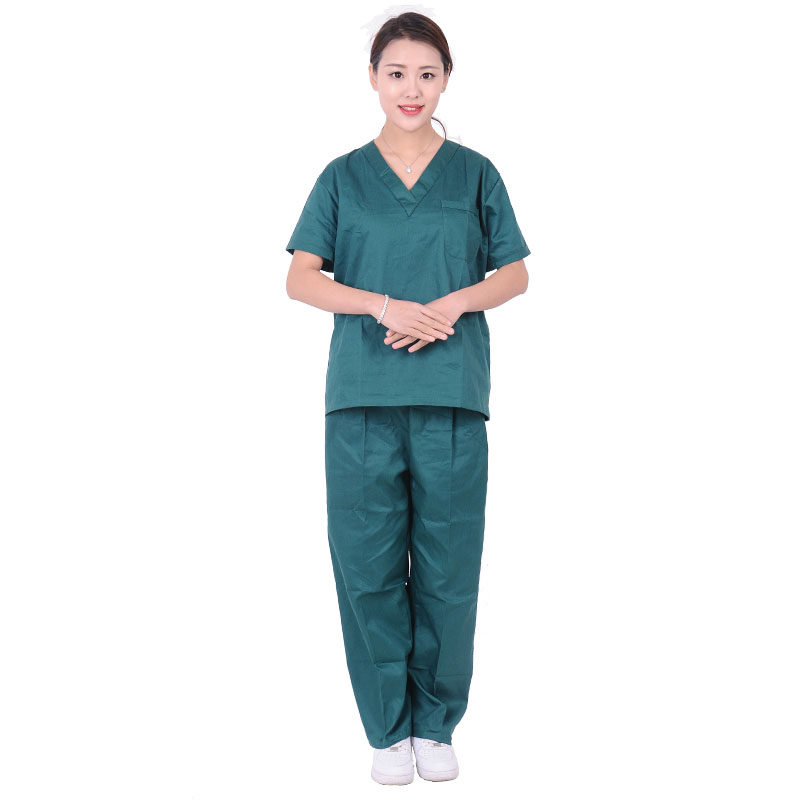 Хлопковая летняя зеленая униформа врача подходит для мужчин и женщин для работы, короткий рукав