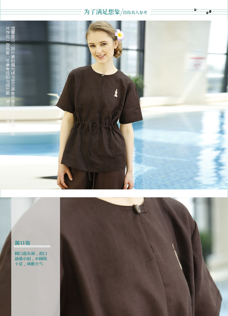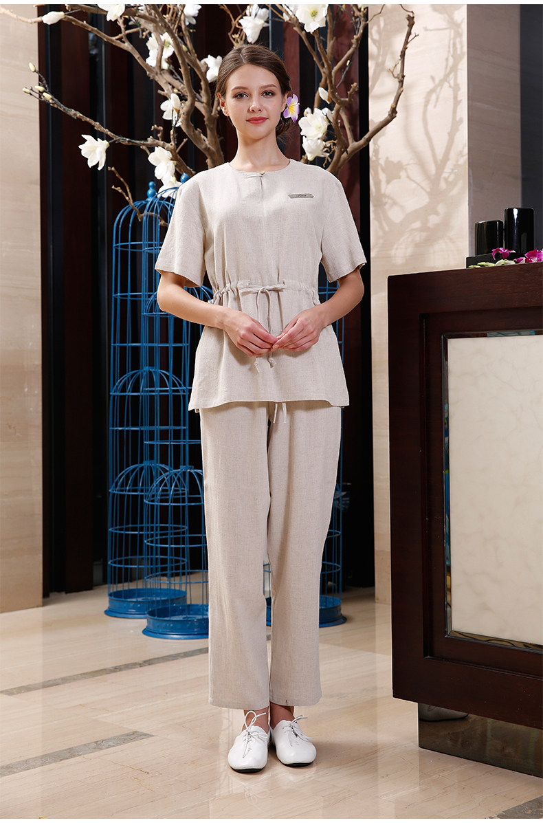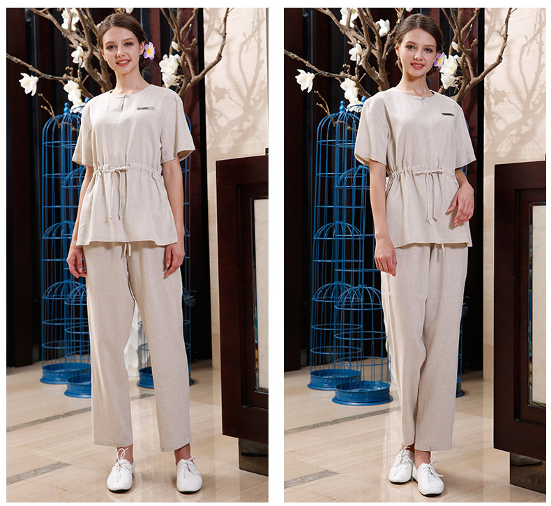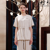 柠禾 Элитный комбинезон, нарукавники, комплект, из хлопка и льна, короткий рукав