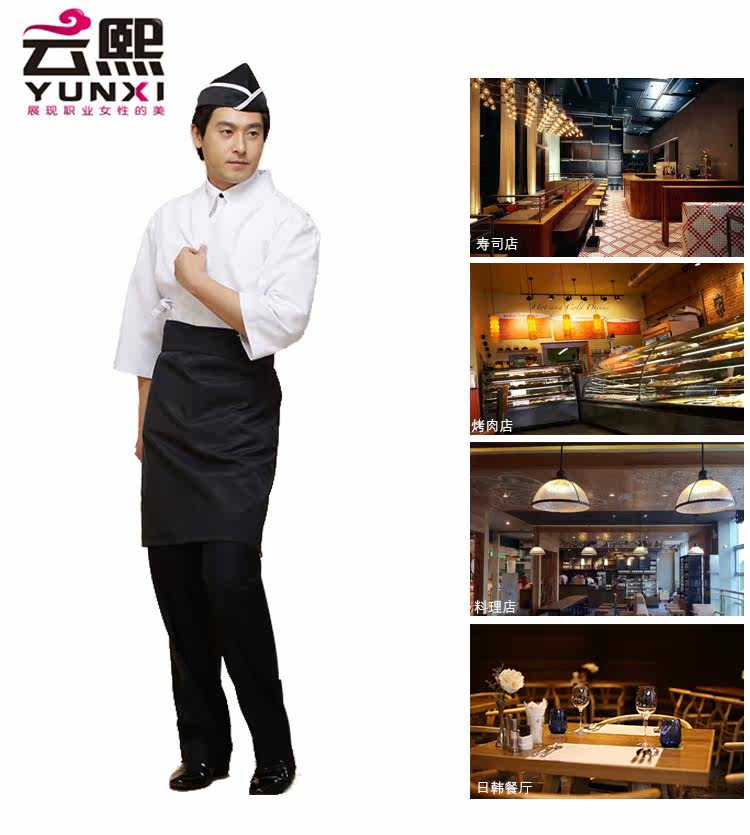 Японская кулинарная одежда белый шеф -повар кухня -обжаренная мужская официанта обратно кухонная рабочая одежда