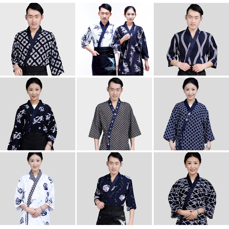 Печать серии Sushi Service Korean Restaurant Restaurant Office Service Service Service Услуги мужской и женской японской кухни кимоно