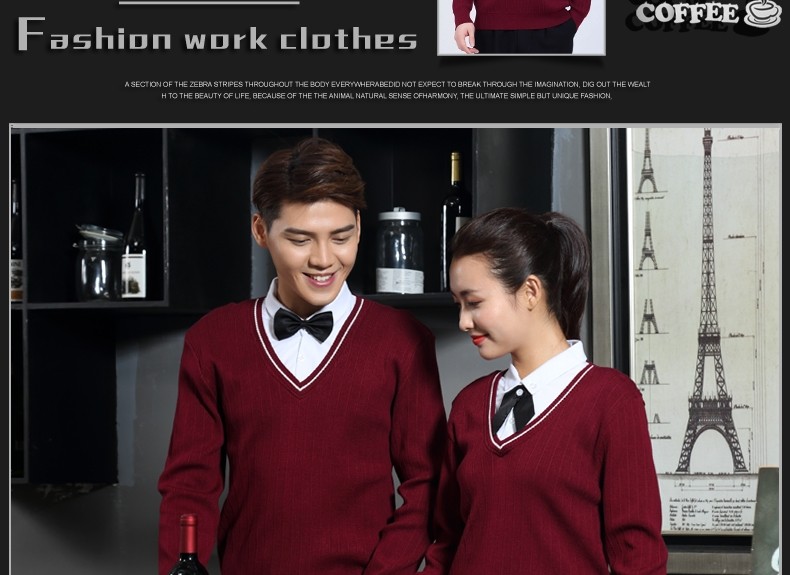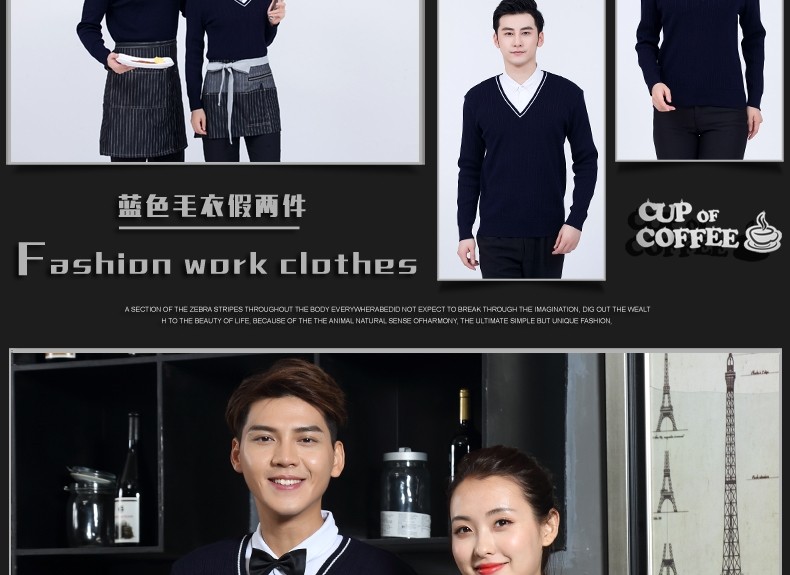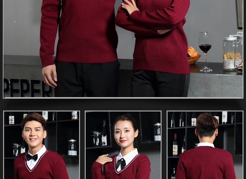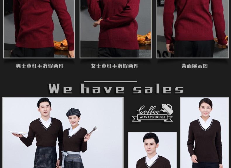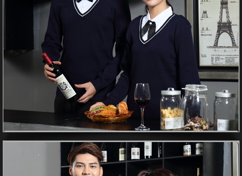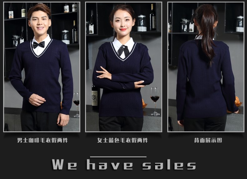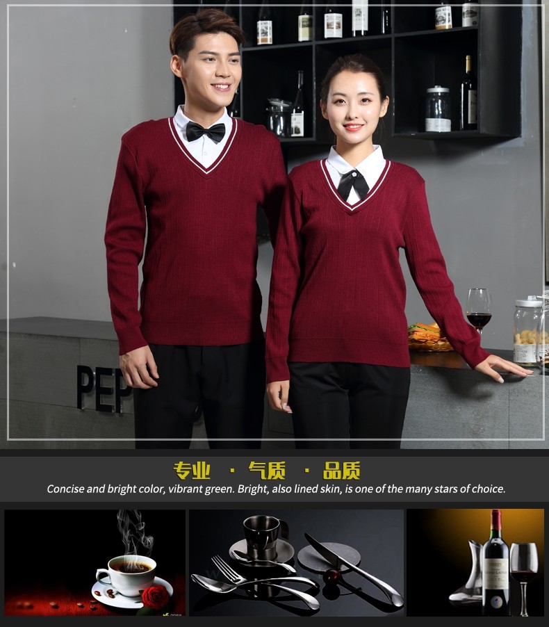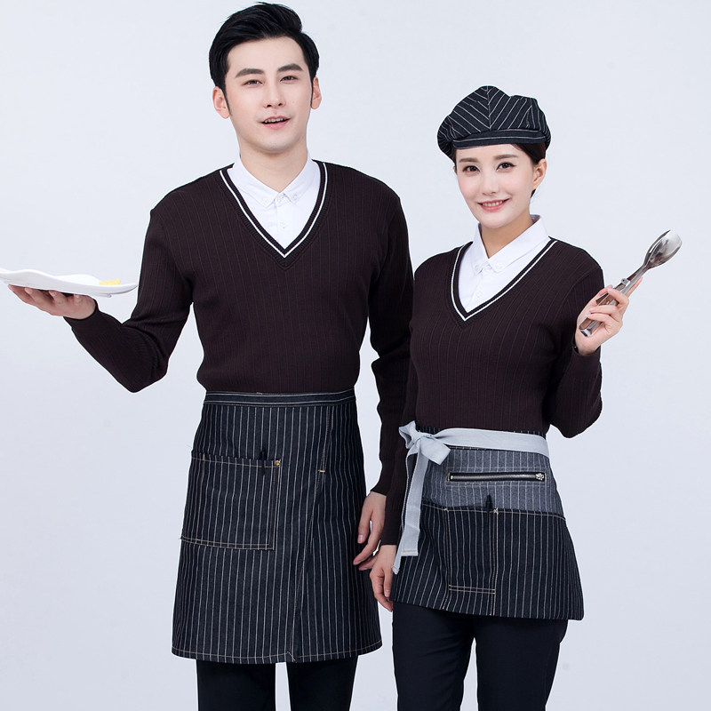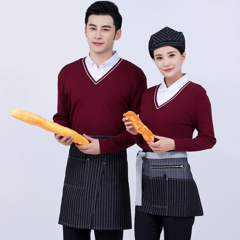 Рабочая форма для кафе с длинными рукавами, западный ресторан, официант, осень и зима, супермаркет, магазин чая с молоком, стойка регистрации, кассир, свитер с v-образным вырезом