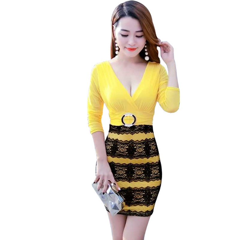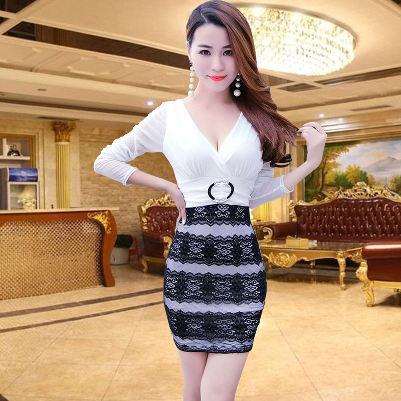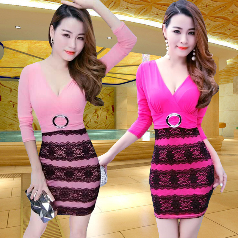 Сексуальное модное платье, массажер, лонгслив для работы, V-образный вырез, с акцентом на бедрах