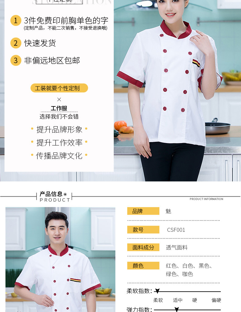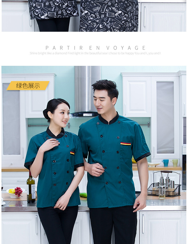 是魅 Шеф-повар подходит для летних тонких дышащих ресторанов ресторана шеф-повара рабочая одежда одежда с короткими рукавами для мужчин и женщин