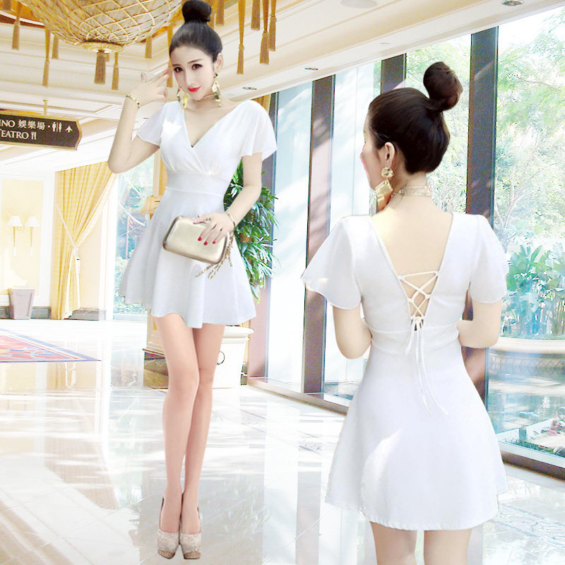Сексуальное платье, мини-юбка, по фигуре, облегающий крой, с открытой спиной, V-образный вырез