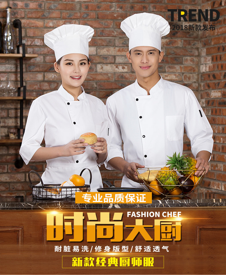 Шеф -повара Работа в одежде мужская седьмая рукава рукава и декоративная кухня Летняя торт Магазин выпечка мастера Вест -Пойнт