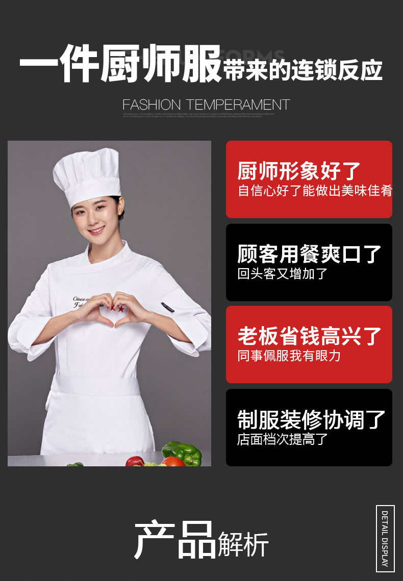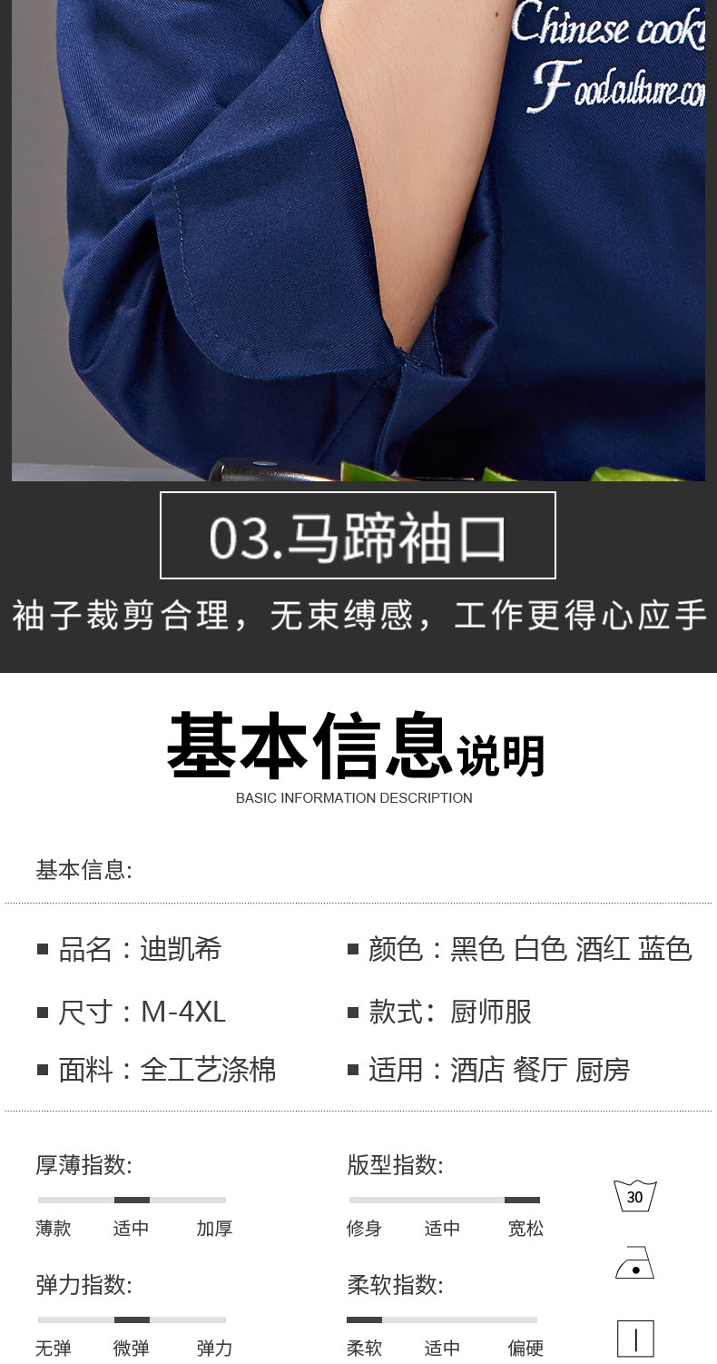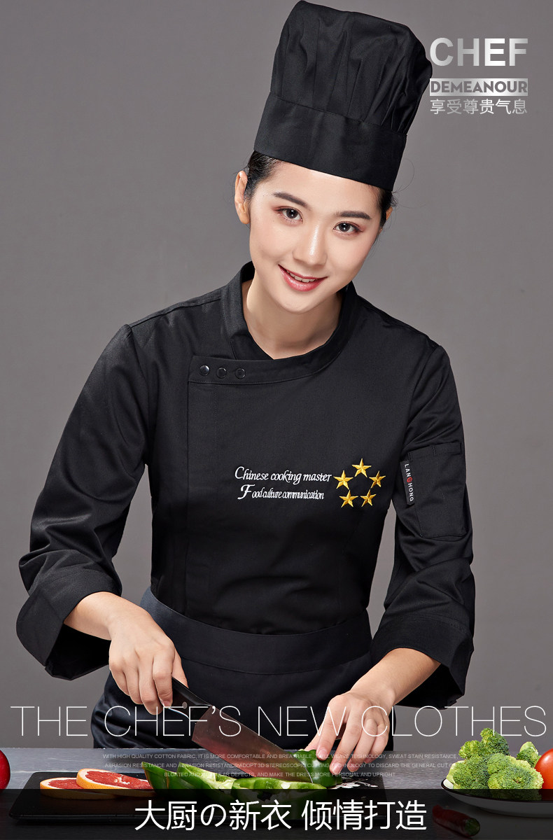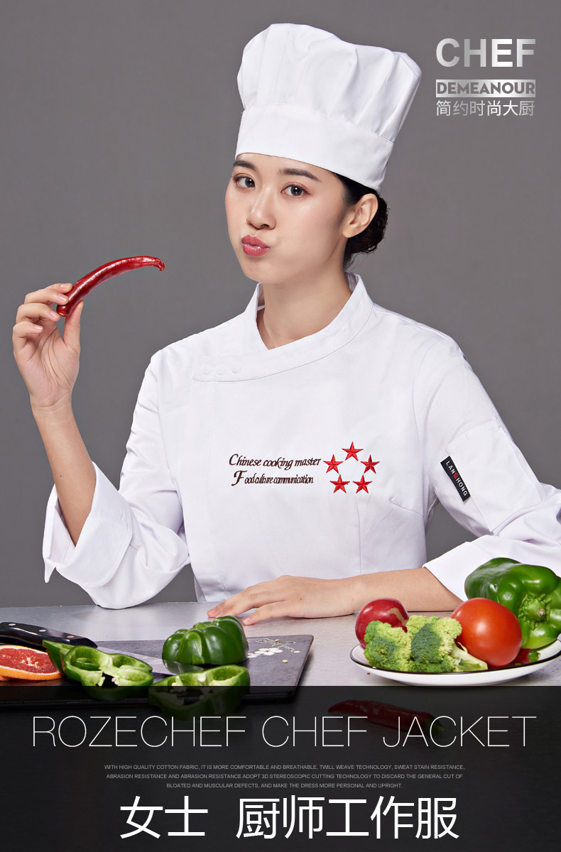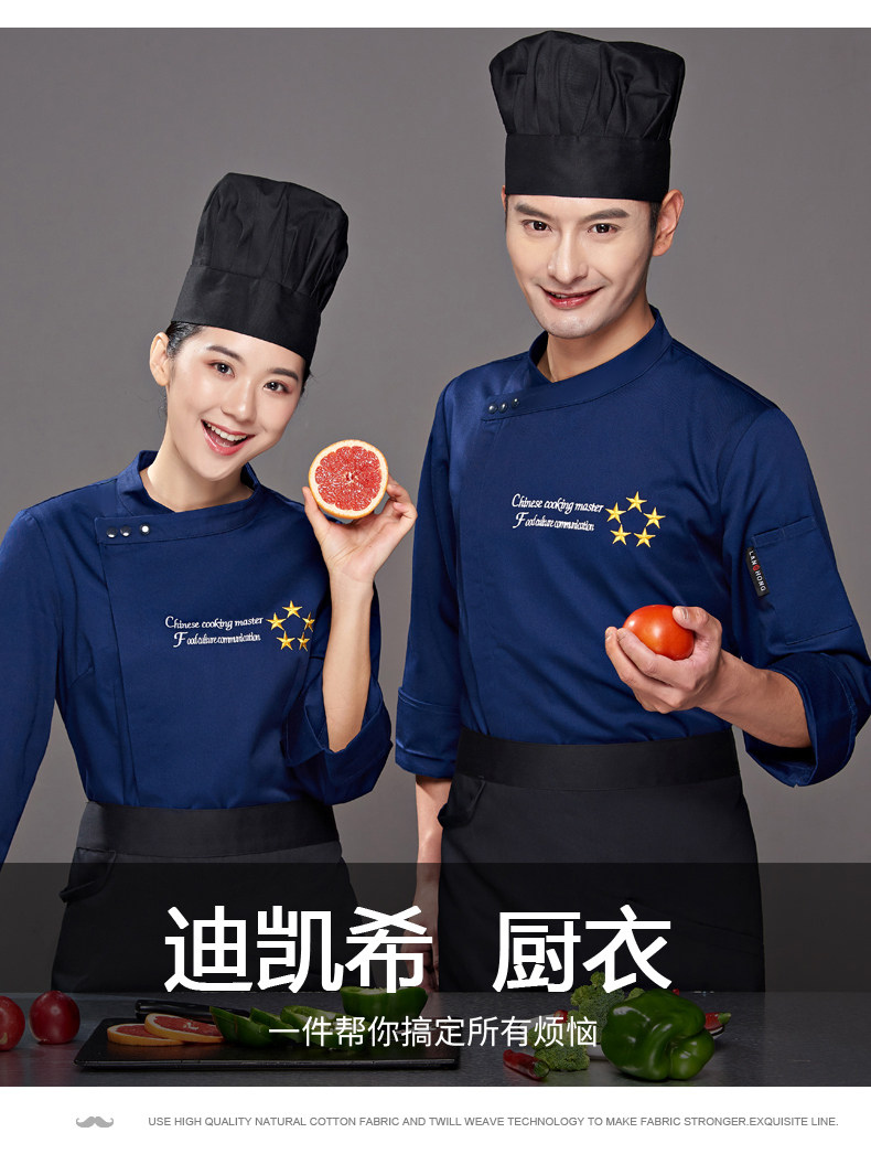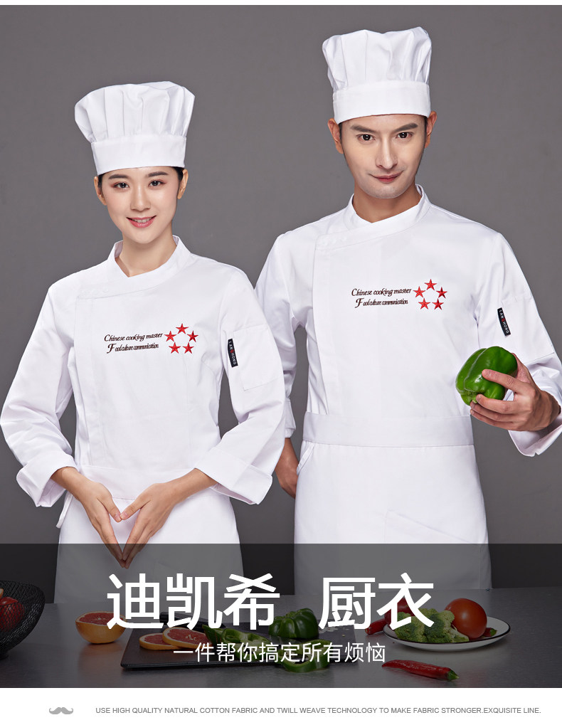 迪凯希 Женский пирог с длинными поварами, магазин, выпечка, выпечка кухонная одежда, кухонная одежда, три -кухонная куртка, кухонная куртка