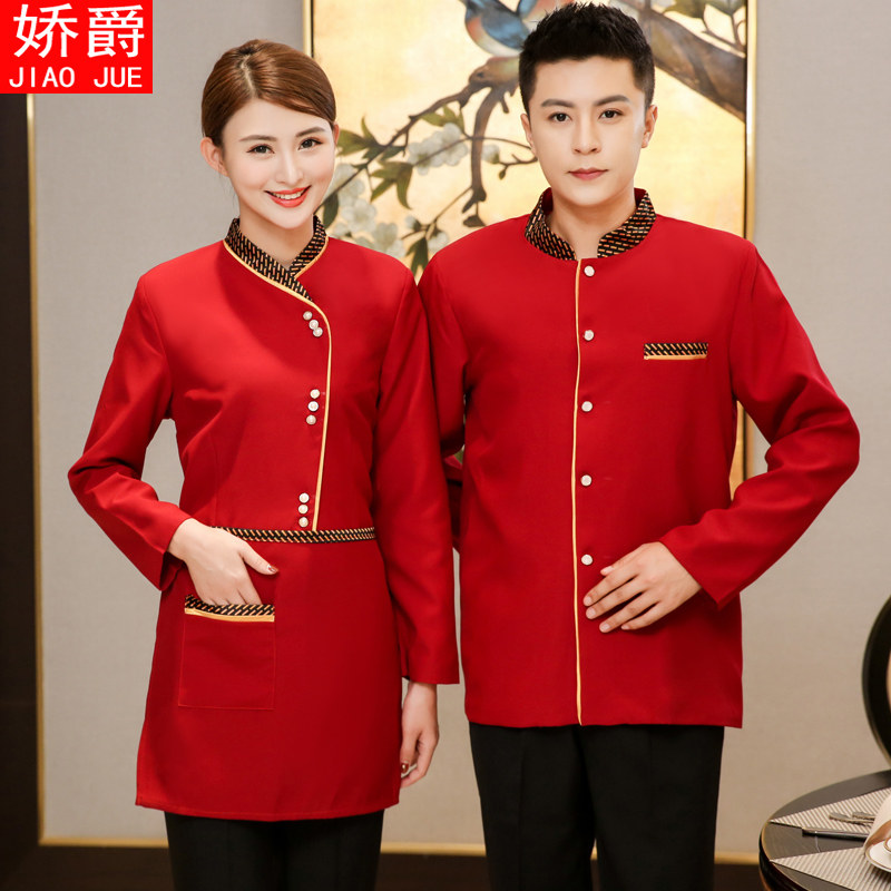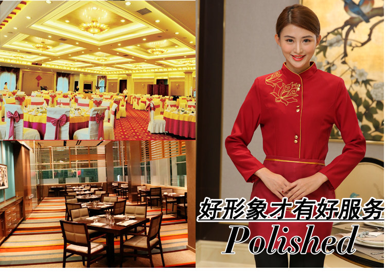 Отец -официант услуги обслуживания рабочего обслуживания девочка Long -sleeved Hotel Restaurant Restaurant Hotpot и овощи.