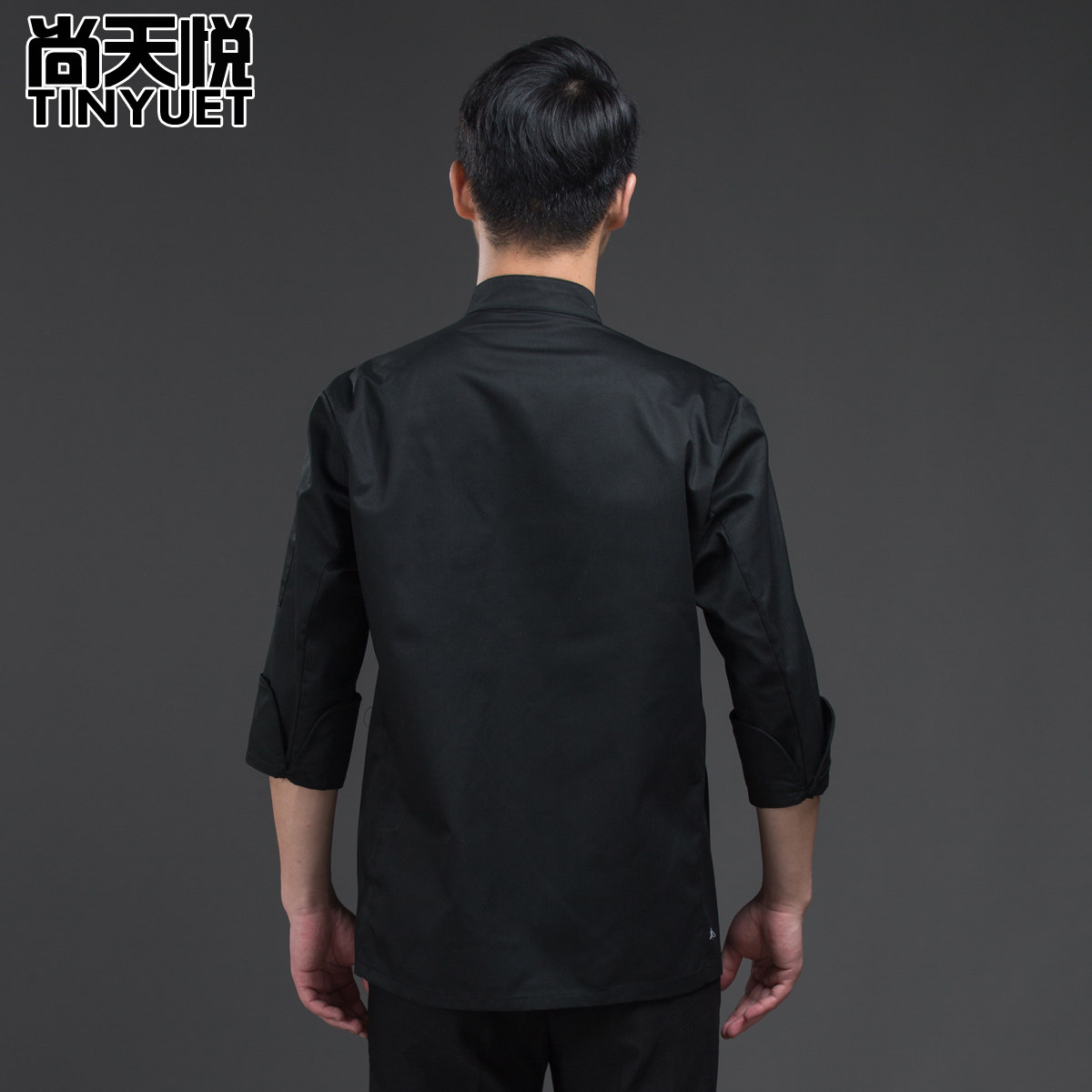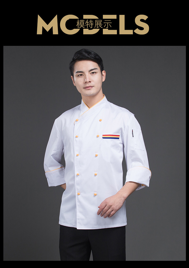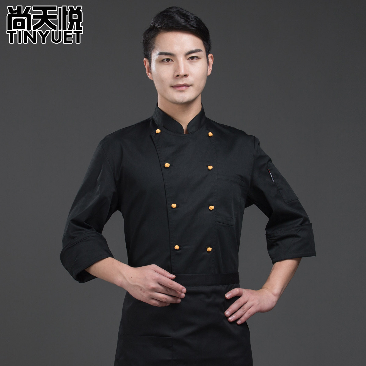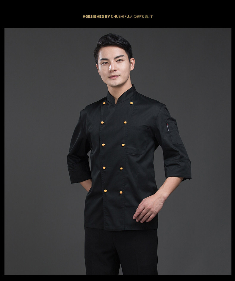 Звездный отель китайский шеф -повар для мужчин китайский стиль желтая ткань пряжка кухонная одежда для кухонной одежды черная одежда с длинные рукава