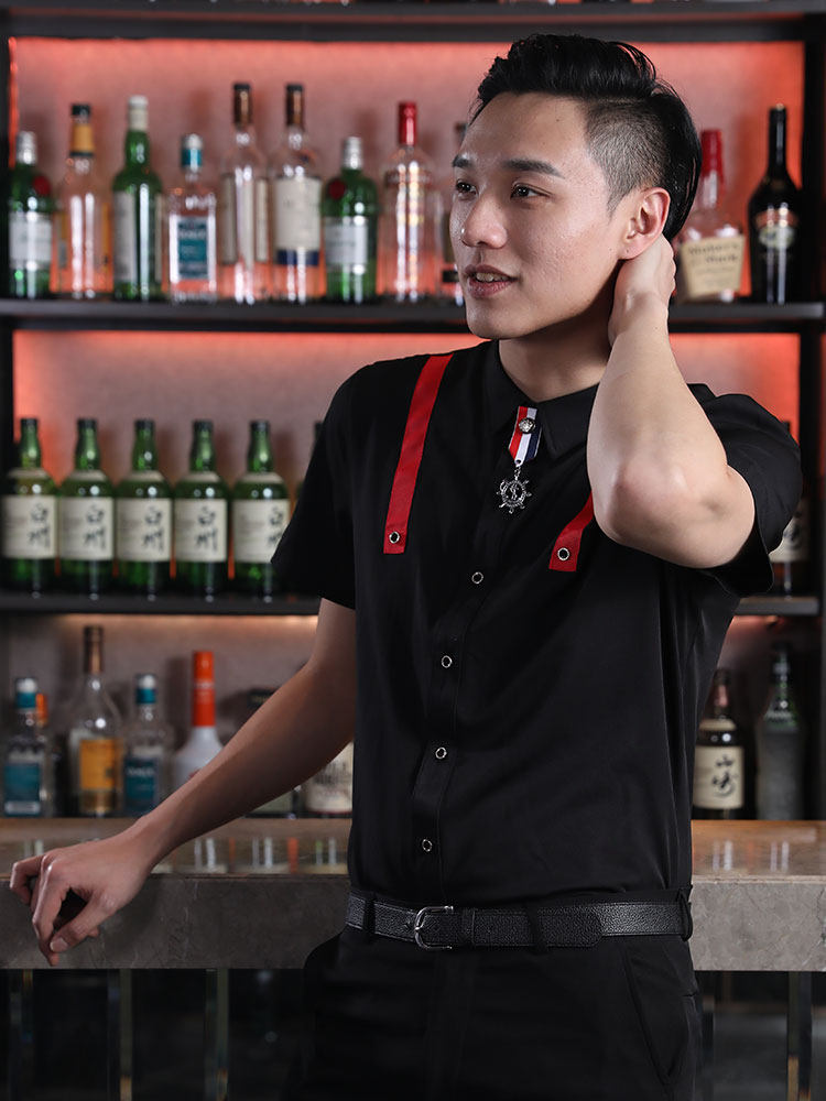 清壹 KTV Рабочая одежда мужская модная гостиница клуб Cinema Nightclub Bar Bar Официант одежда для рубашки с короткими рукавами лето