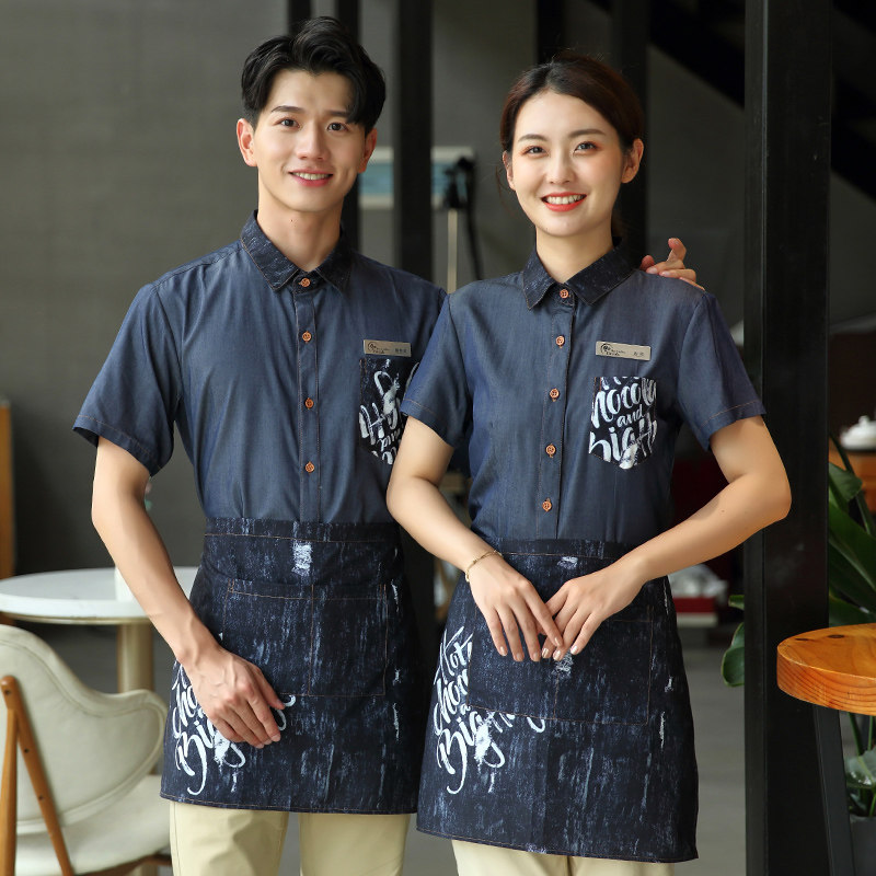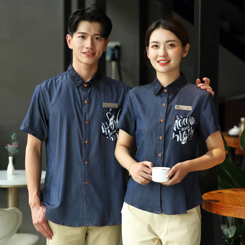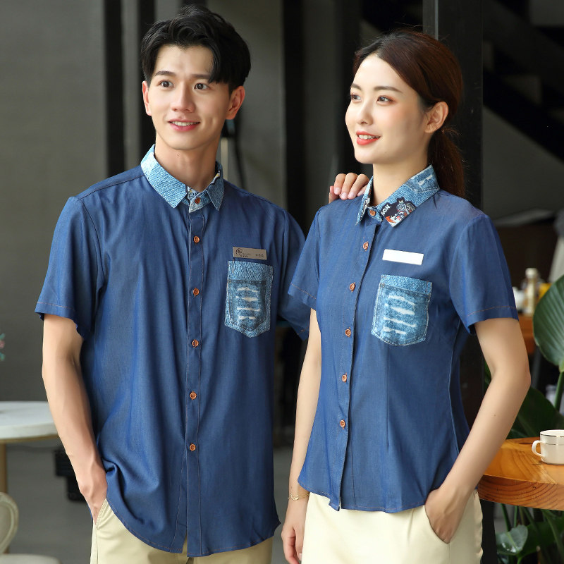 Японская кофейная джинсовая рубашка для работы, летняя одежда, короткий рукав