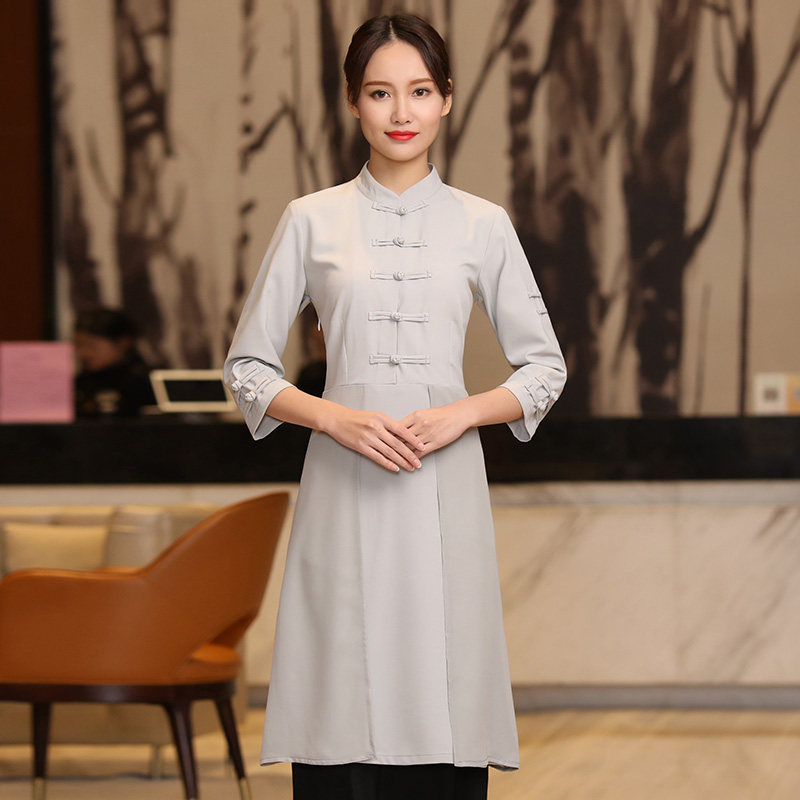 Длинное платье для работы, летняя одежда, короткий рукав, китайский стиль