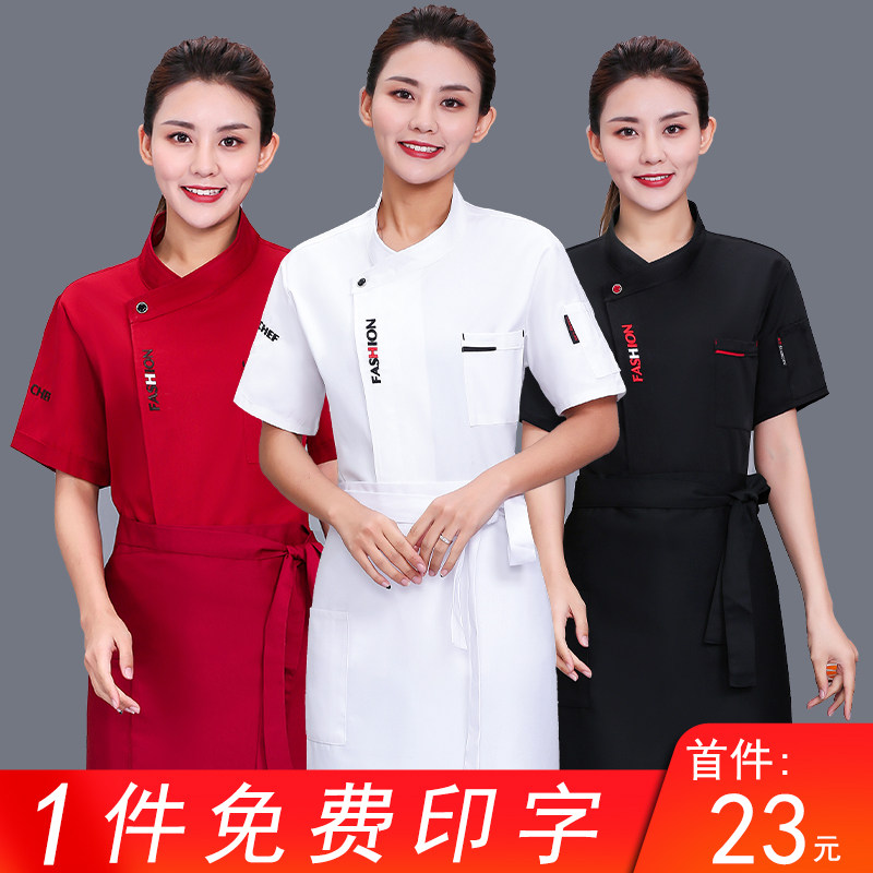 Catering Chef Work Одежда для женщин с коротким рукавом Thin Hotel Back Kitchen Women Work Work Одежда летняя дышащая настройка Мужчины