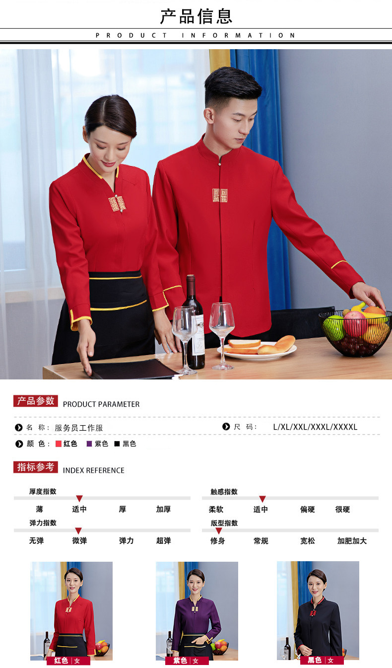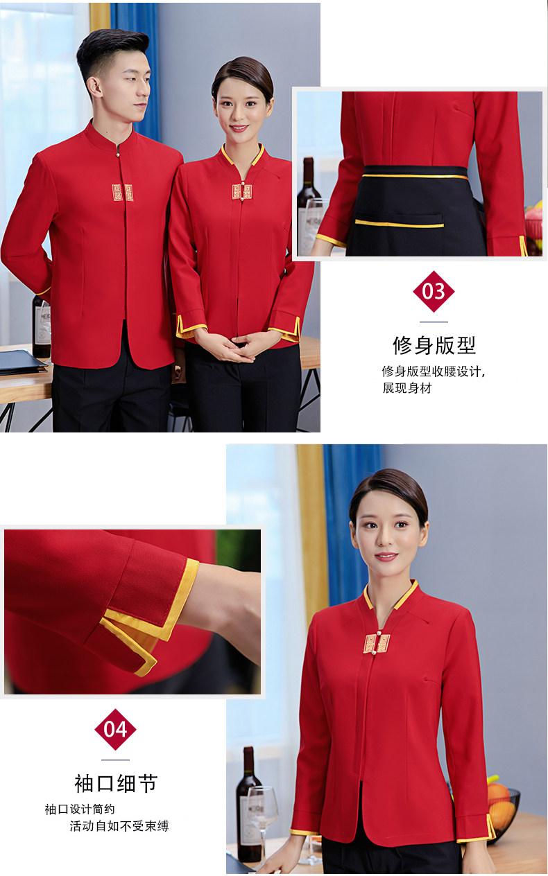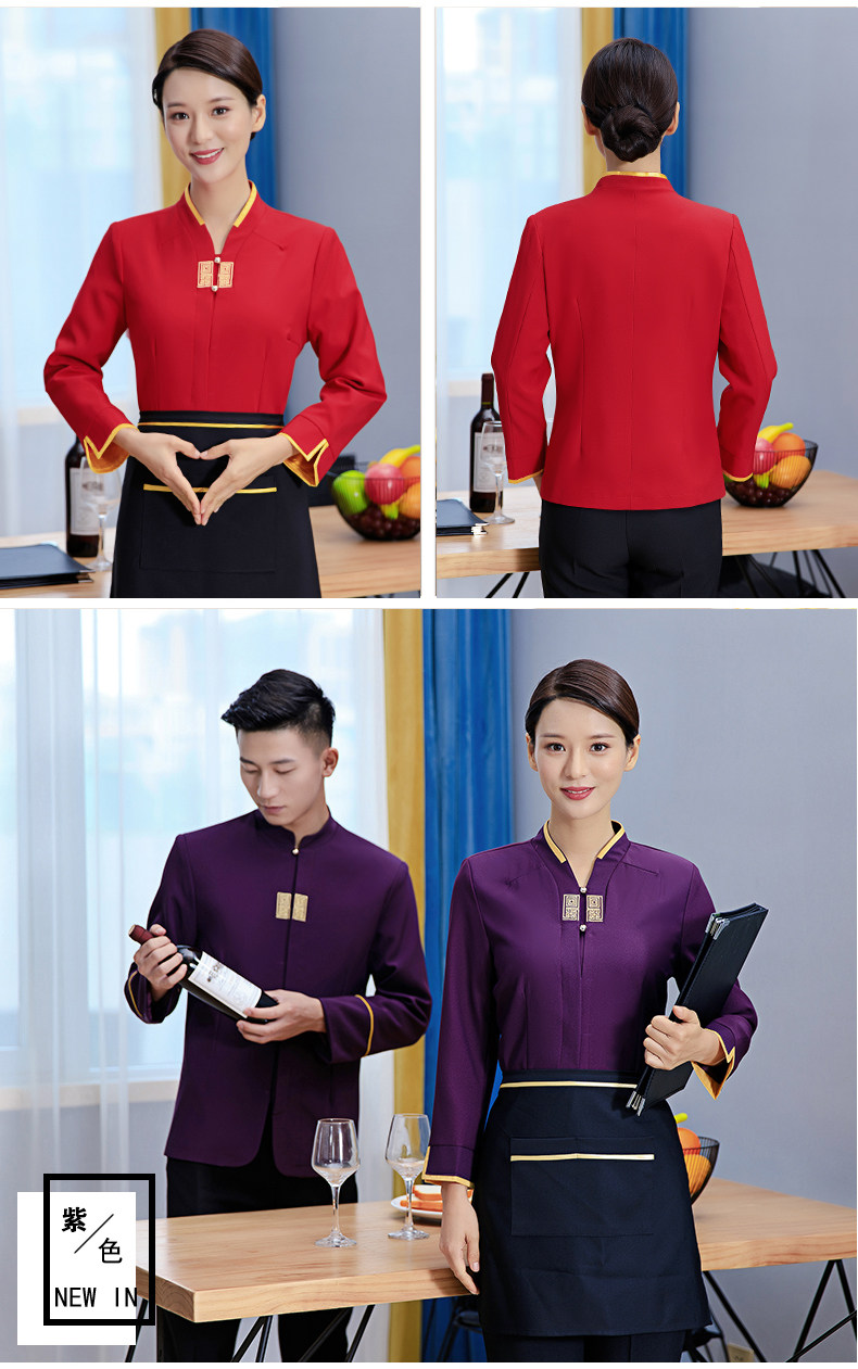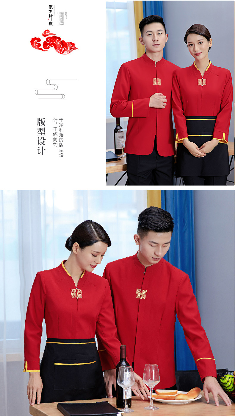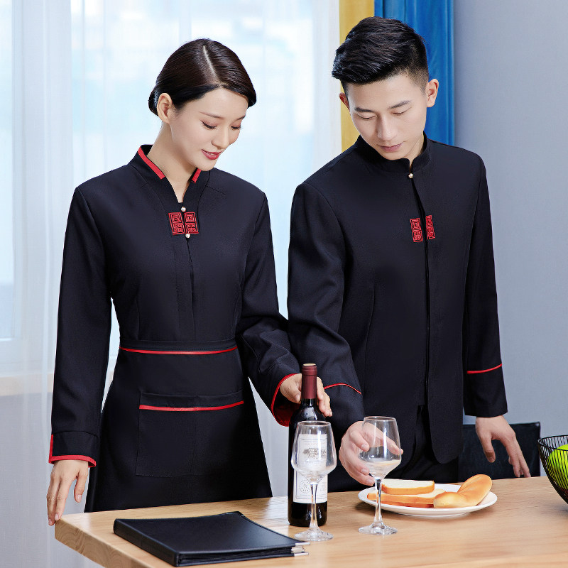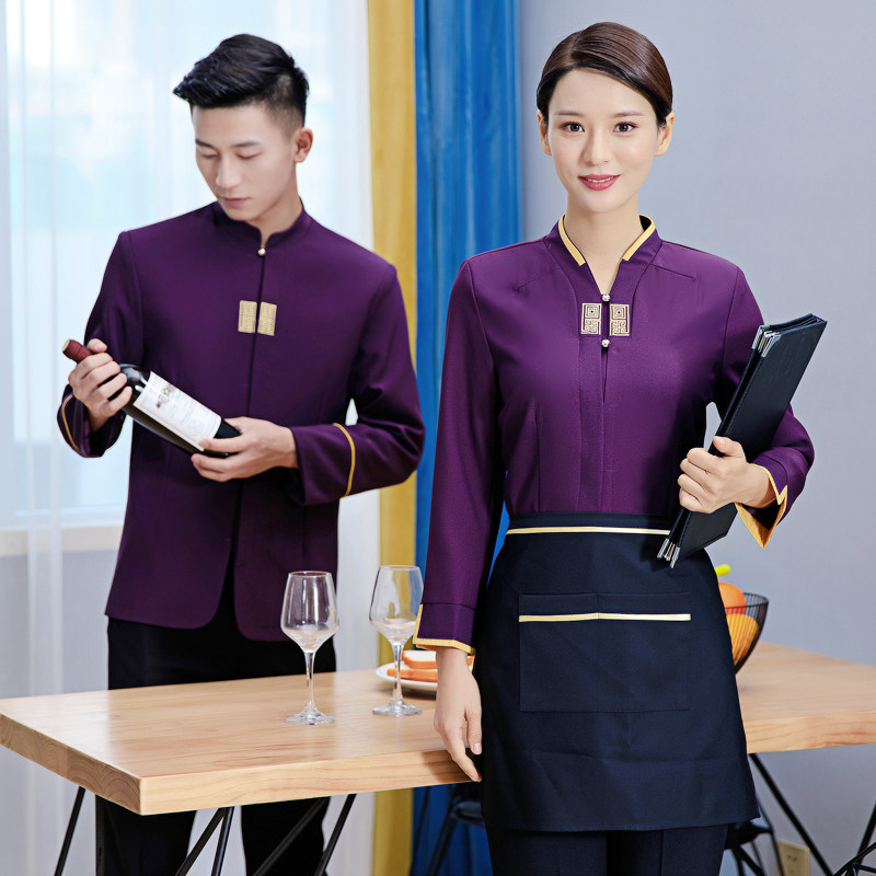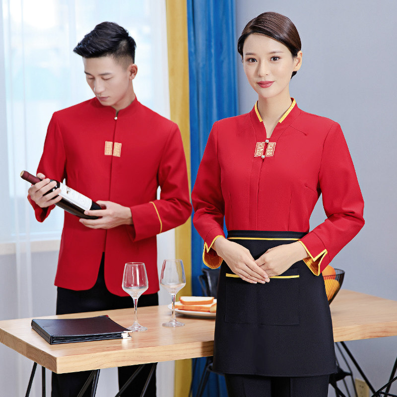 Официант рабочая одежда с длинными рукавами стойки надо стойки стола для ресторана Hotpot осень и зимний китайский ресторан Fast Restaurant Women Женщины