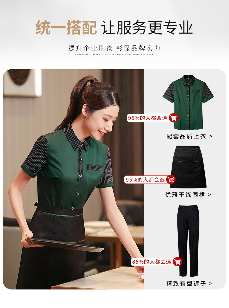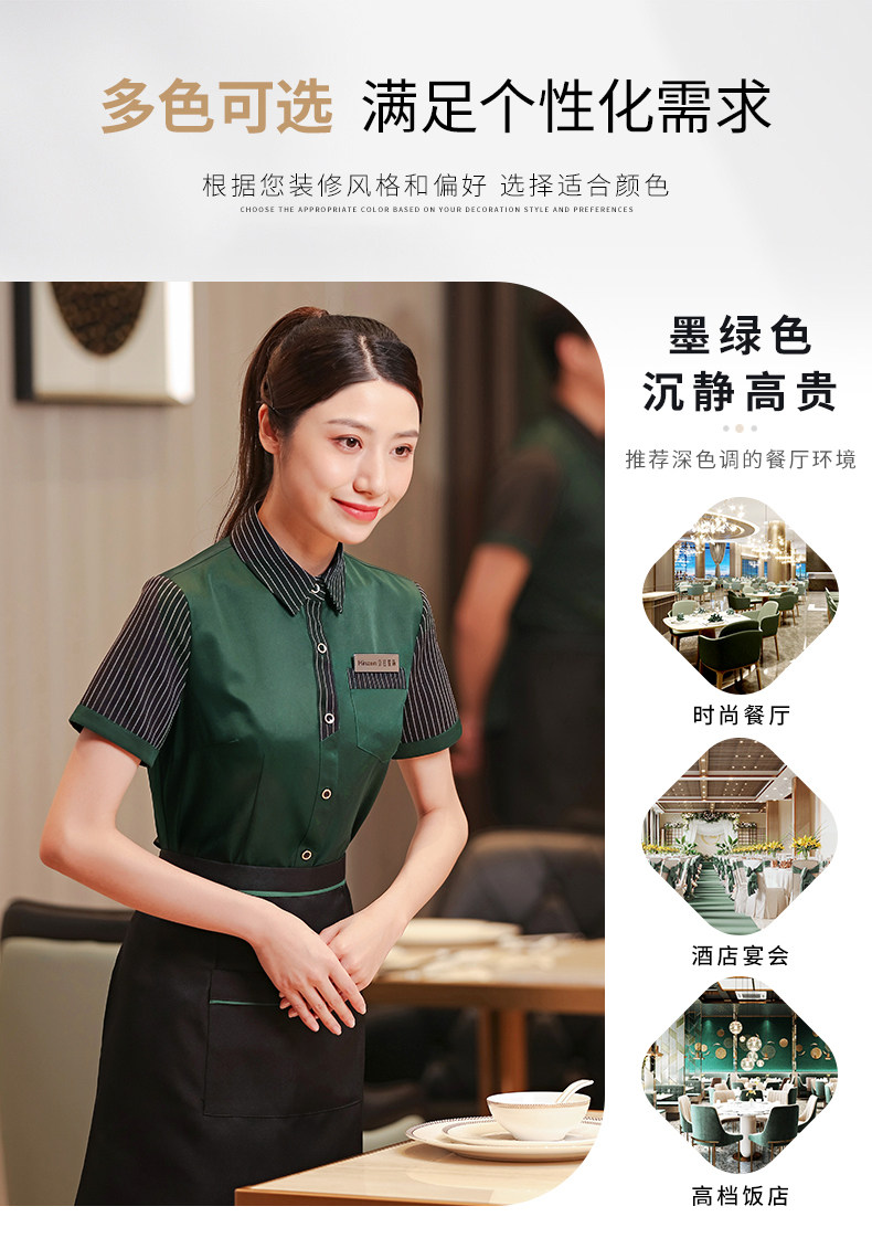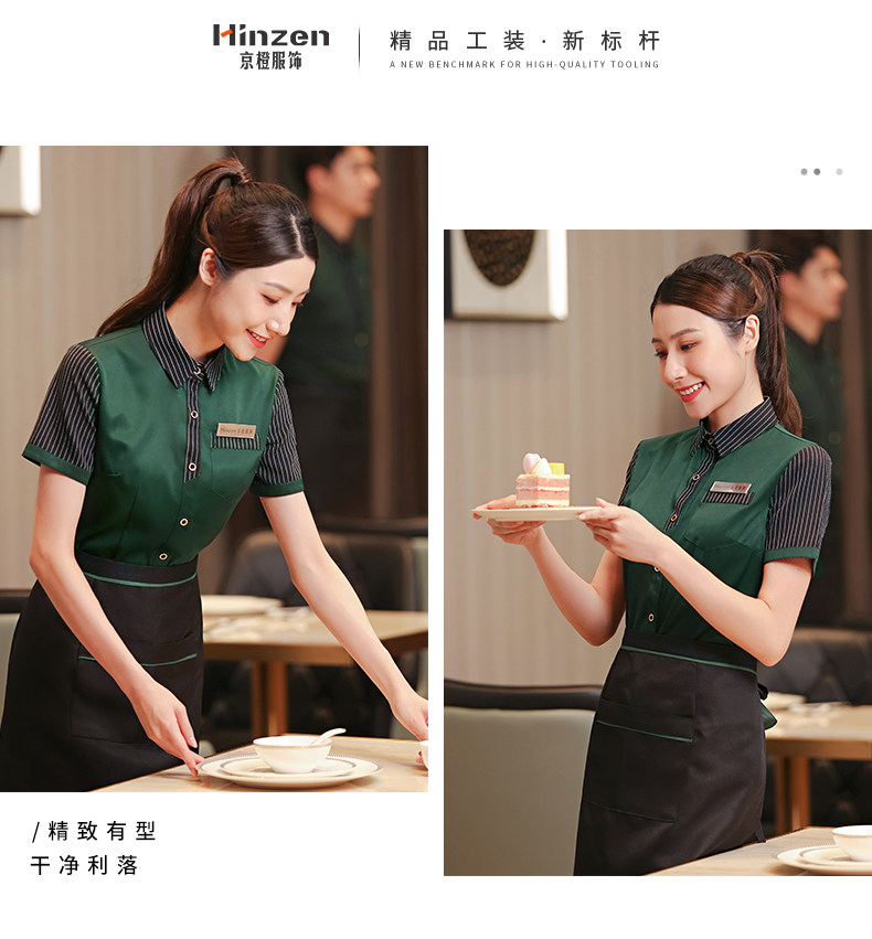 京橙 Рабочая одежда официанта для общественного питания, летняя женская одежда с короткими рукавами для отеля, столовой, барбекю, горячего горшка, ресторана, отеля, одежда на заказ