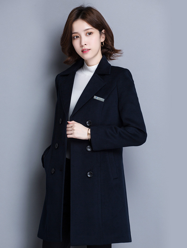 Демисезонное длинное удерживающее тепло шерстяное пальто для работы, облегающий крой, яркий броский стиль, средней длины