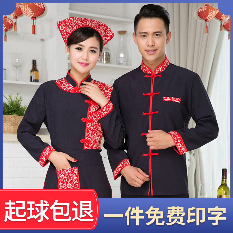 Отец -официант отель работоспособный одежда длинная -отель отель Catering Hotpot Hotpot Music Music китайская стойка ресторана Осень и Зимние Женщины толстые
