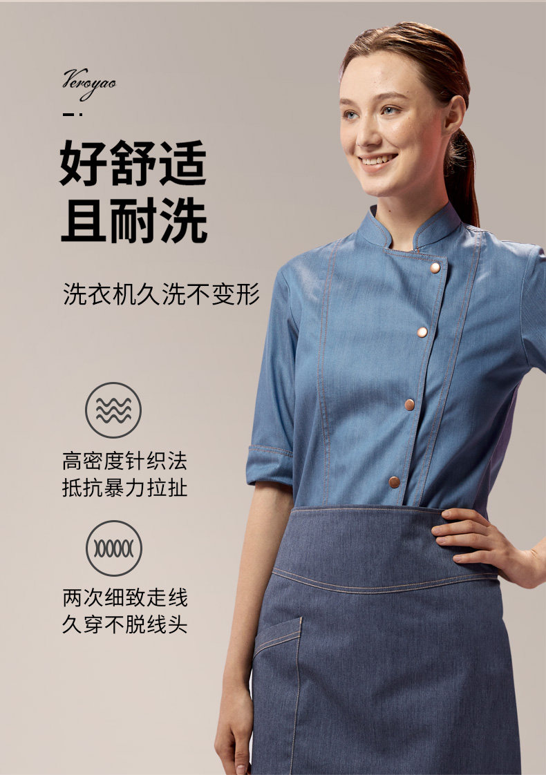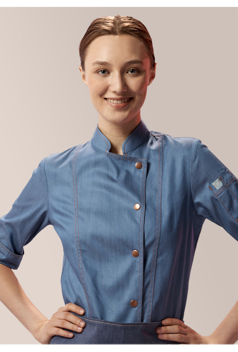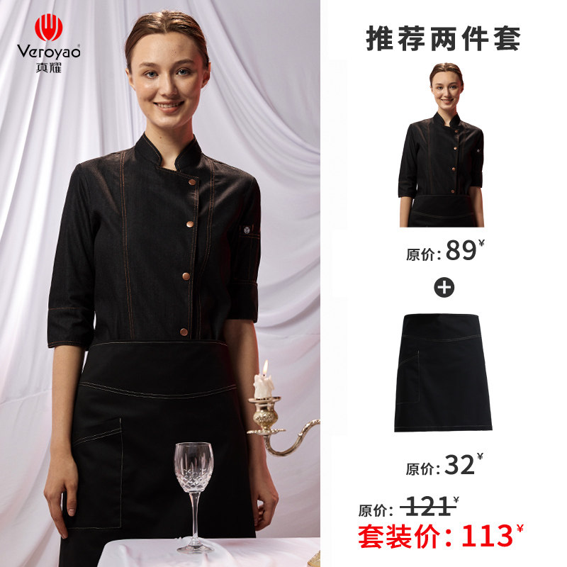 真耀 Комбинезон шеф-повара женский, с длинными рукавами, модные рукава три четверти, униформа шеф-повара для кухни и кухни, выпечка для гостиниц и ресторанов.