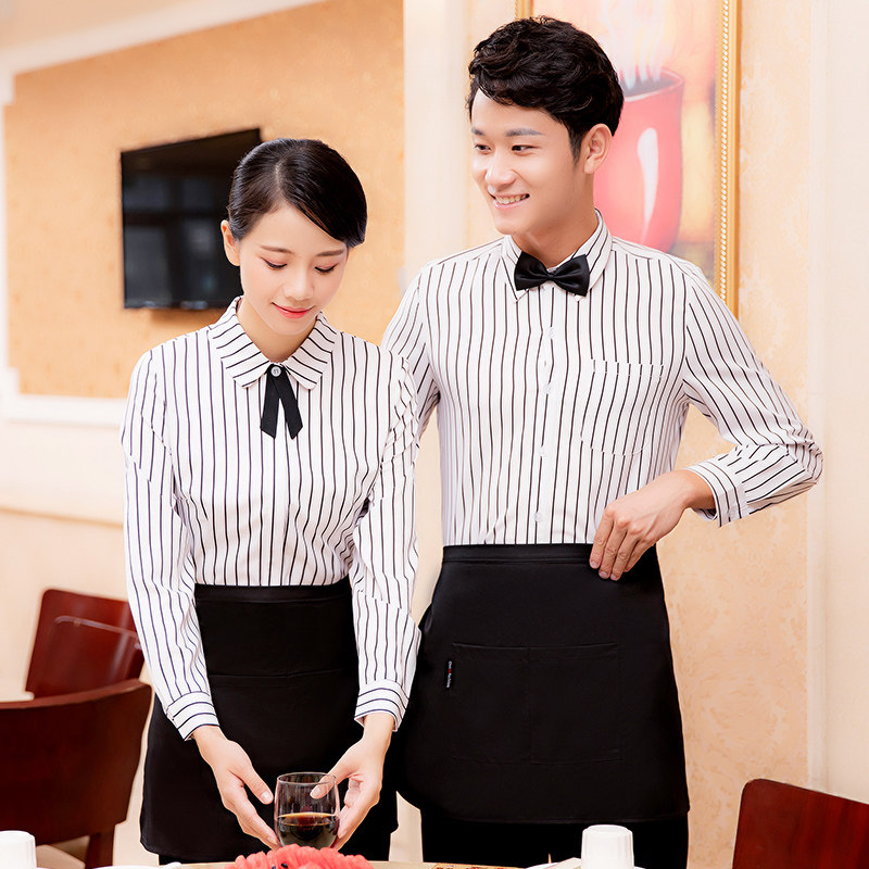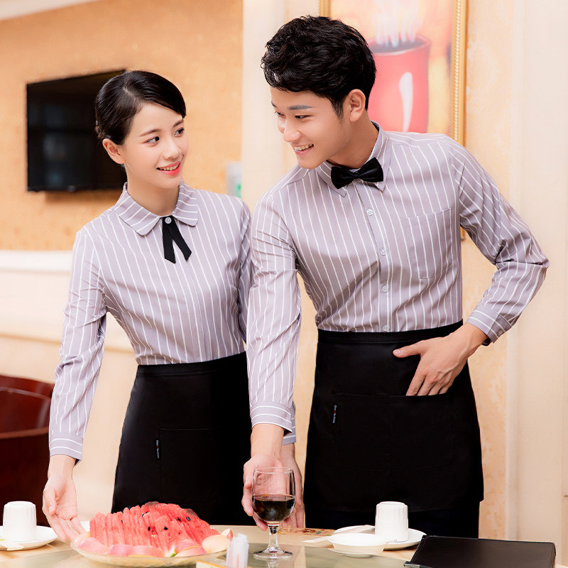 Официант полосатая рубашка весна и осень -длинная рабочая одежда Женская столовая ресторан -ресторан Отель Отель Отель KTV стойка регистрации
