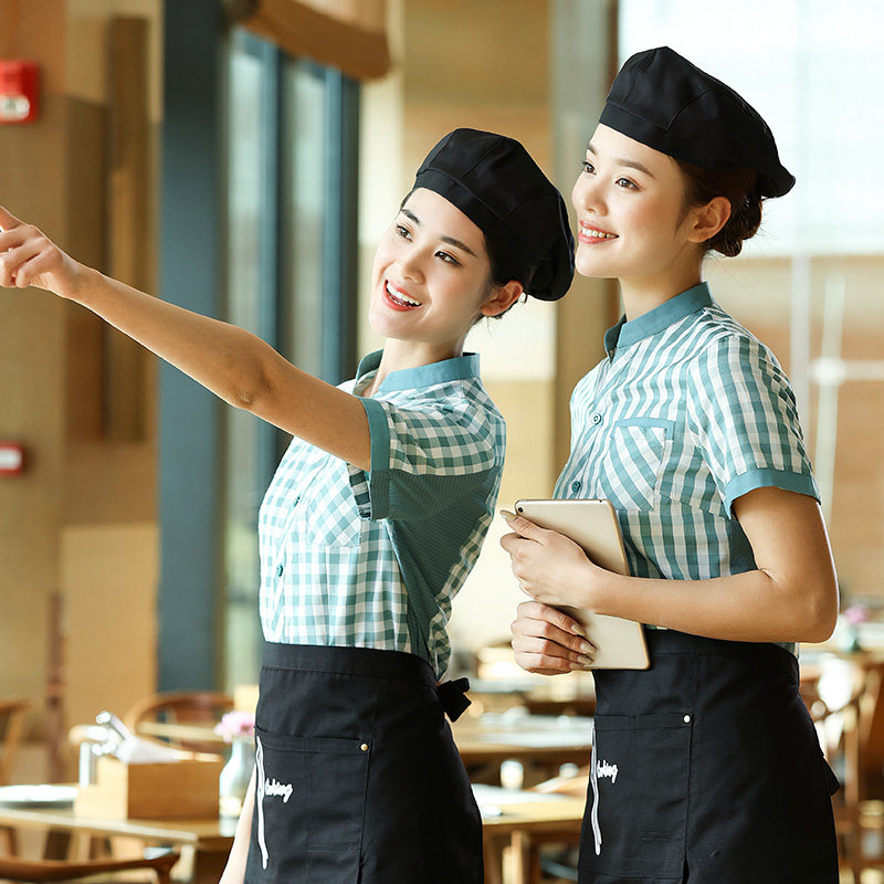 Официант модного питания рабочая одежда летняя короткая -женский ресторан