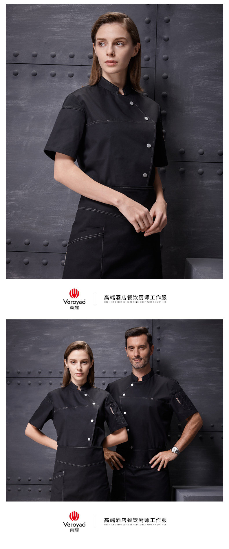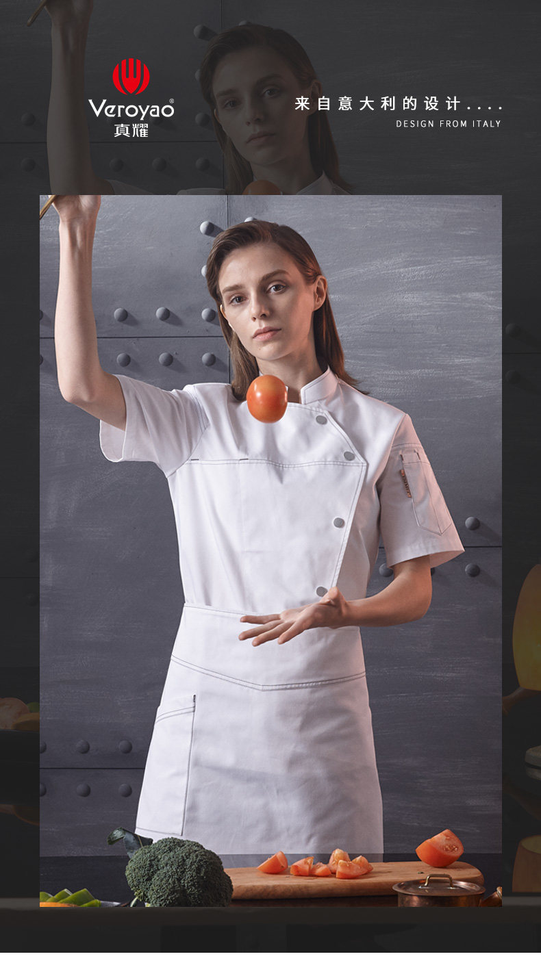 真耀 Летняя черная одежда шеф-повара с короткими рукавами для женщин, элитная рабочая одежда шеф-повара для кухни отеля для женщин, выпечка и выпечка