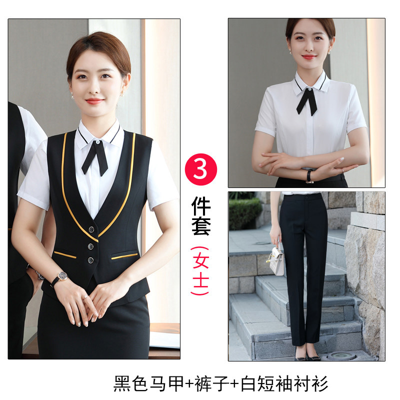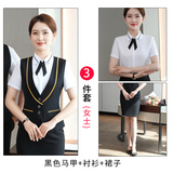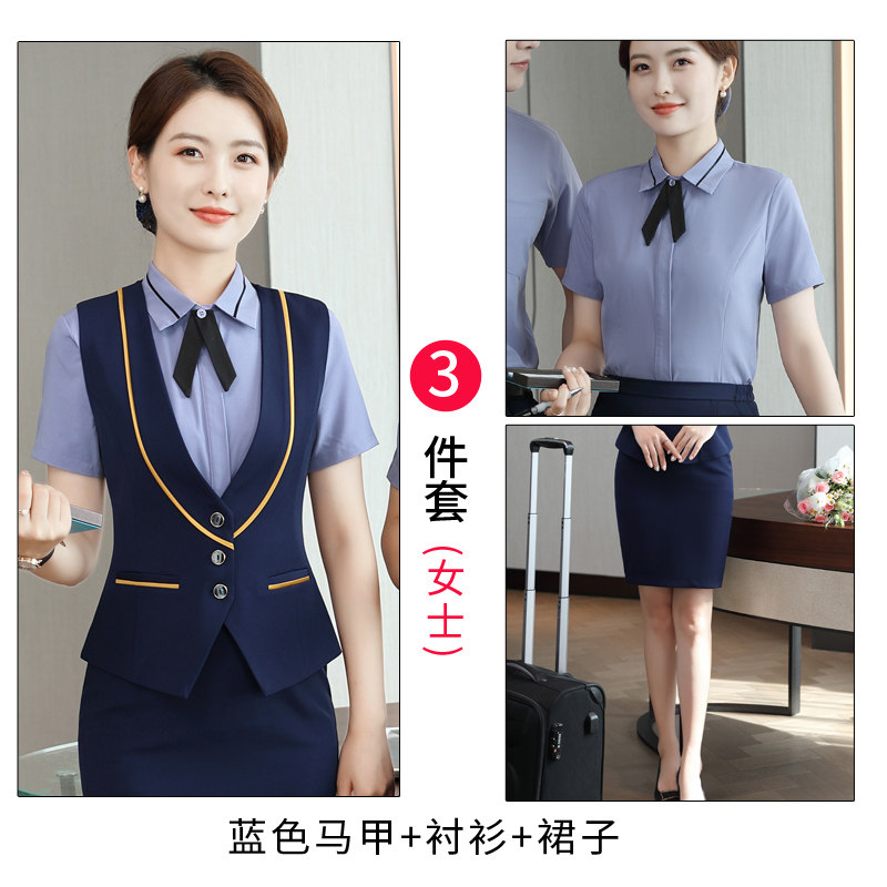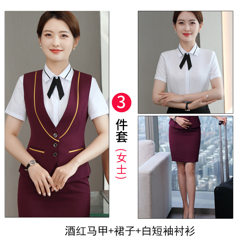 Кассовый аппарат на стойке регистрации отеля, униформа женского короткометражного костюма Ktv