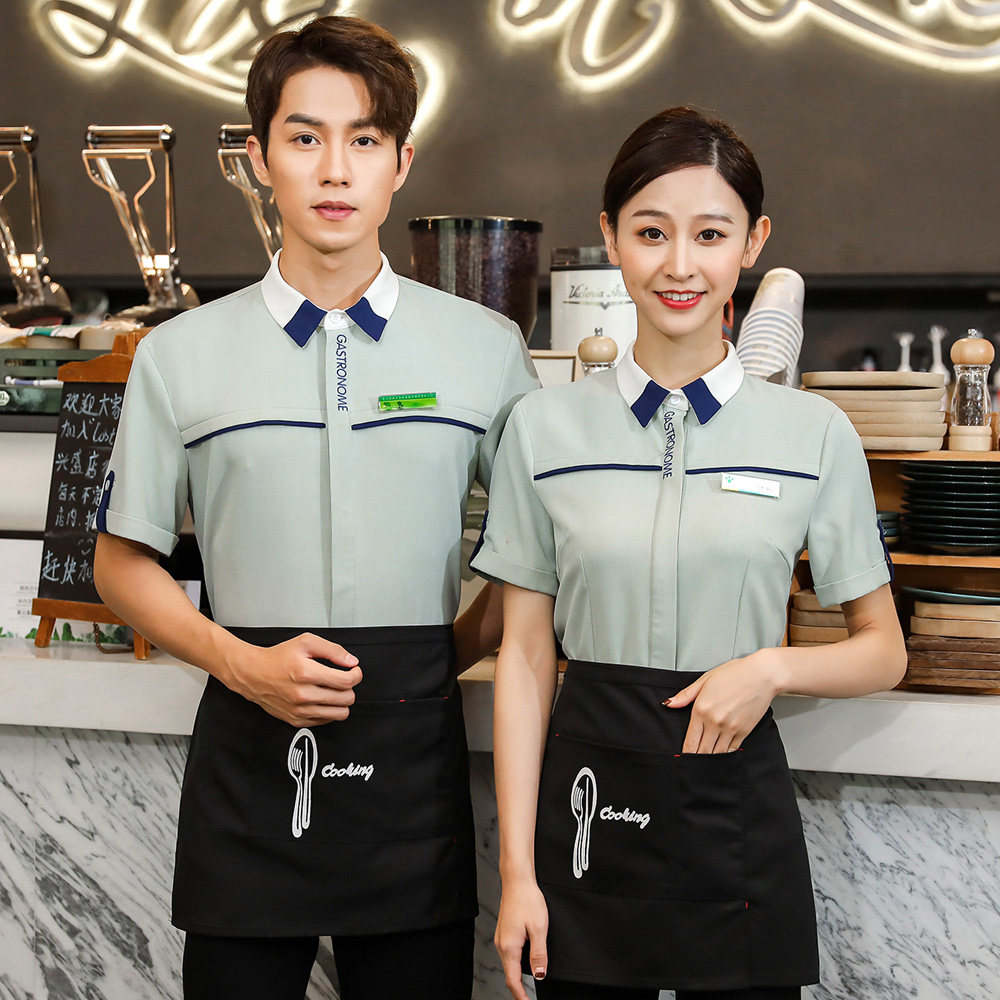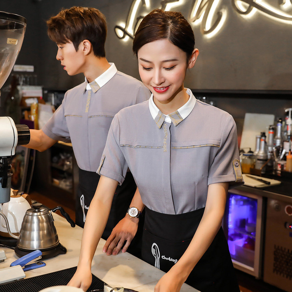 Официант Работая одежда короткая -Торговая молочная чай магазин западный ресторан ресторан, одежда, хлебная десертная точка магазина летняя одежда