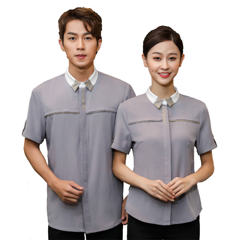 Летняя кофейная белая рубашка для работы, короткий рукав, делается под заказ