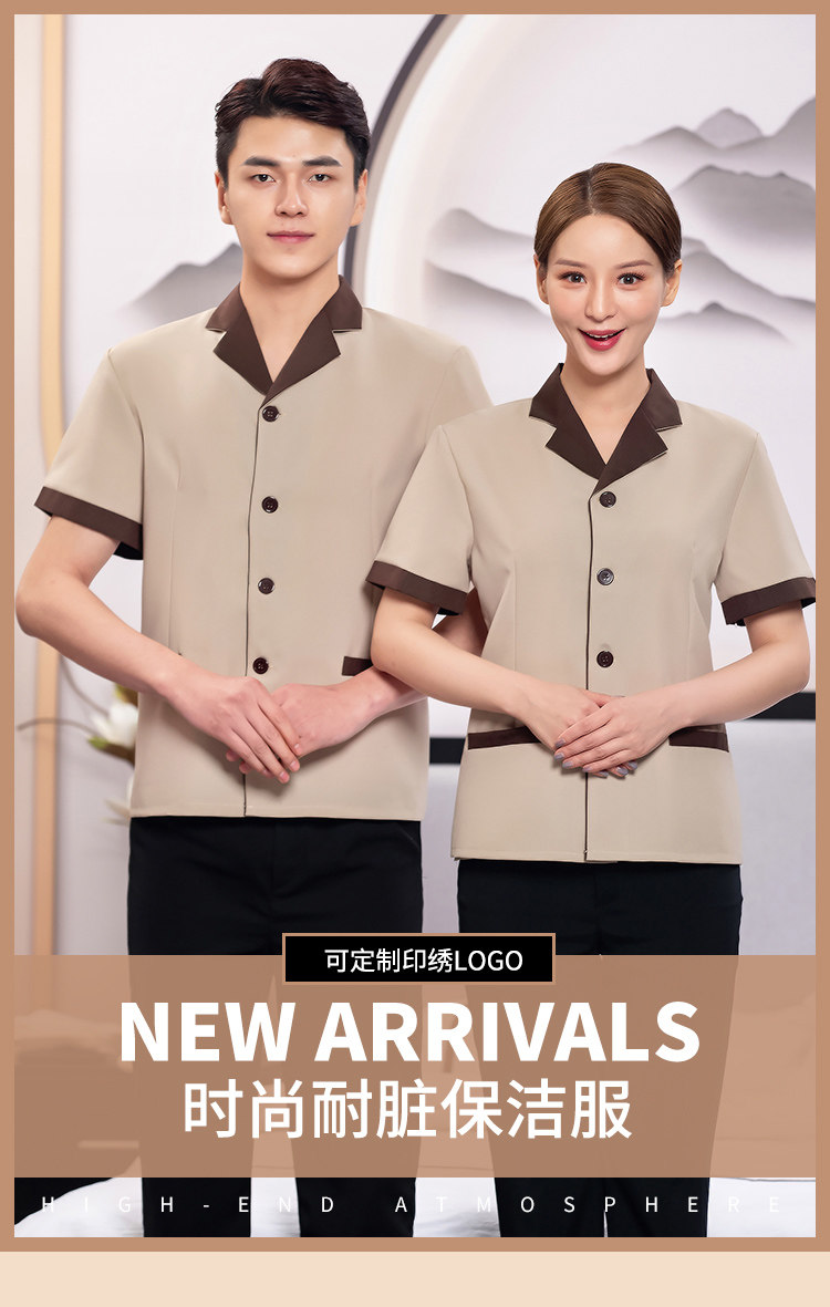 Уборка гостиниц Короткий -Летние гостиницы Общественная собственность торговая торговля уборка тетушка одежда Женская пользовательская логотип