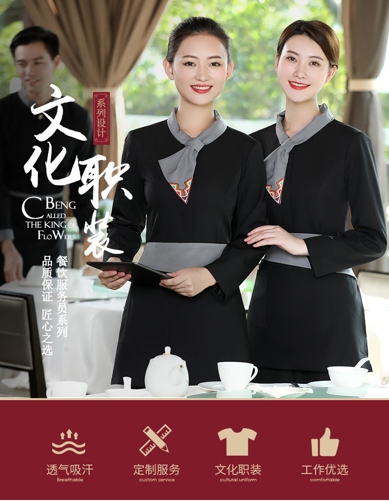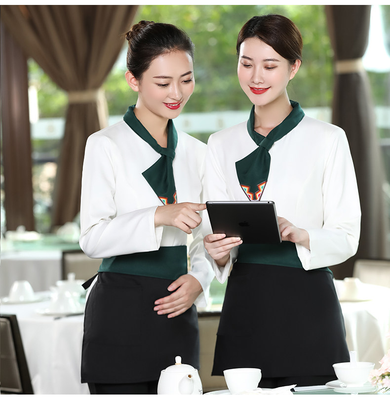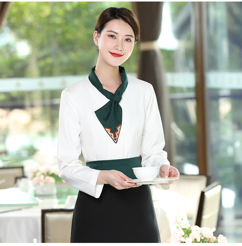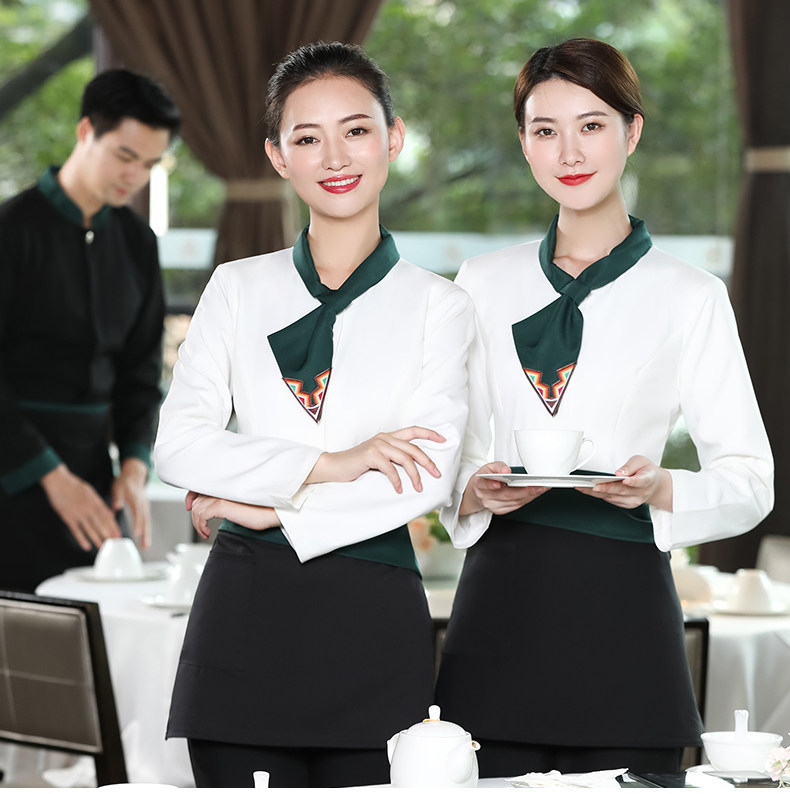 Официант Официант с высоким уровнем рабочей одежды с длинной -насыщенным женским отелем Западный ресторан китайский чайный домик