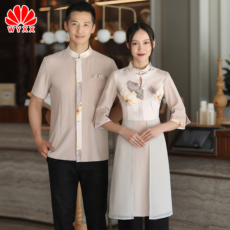 Летнее платье для работы, юбка, короткий рукав, китайский стиль