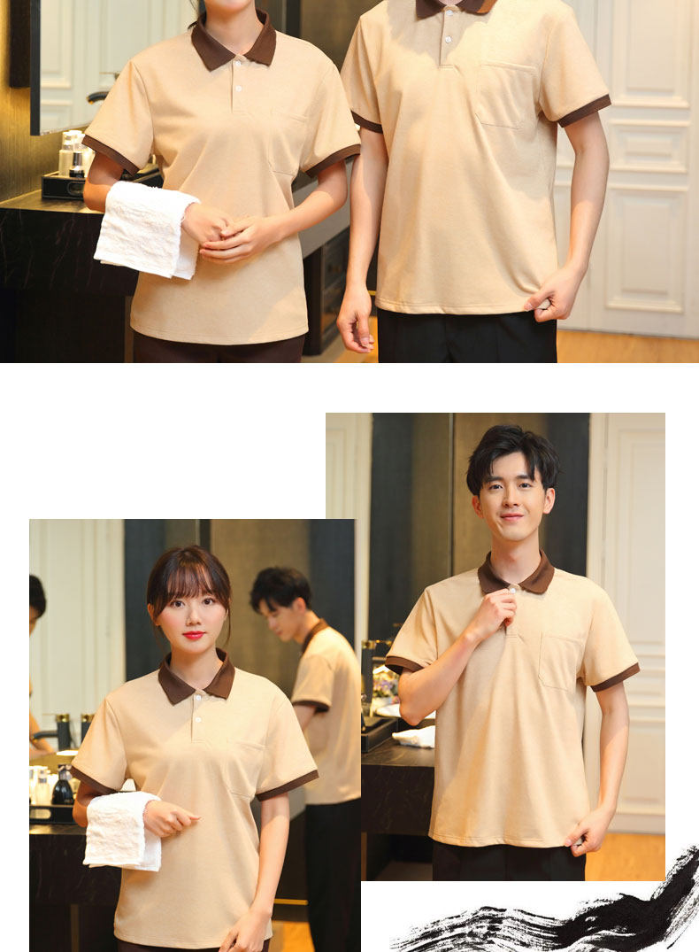 Хлопковая летняя футболка для работы подходит для мужчин и женщин для отеля, комплект, короткий рукав