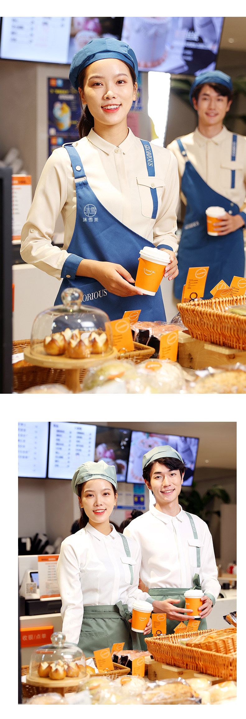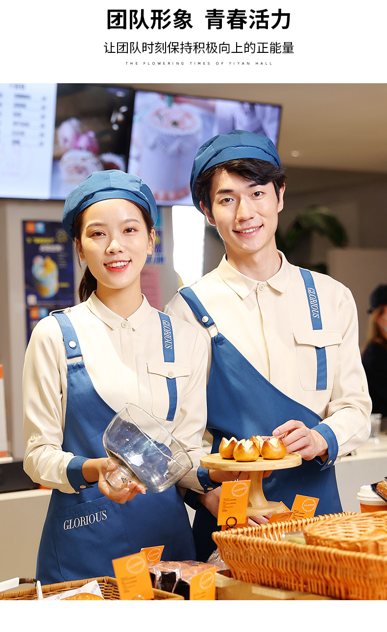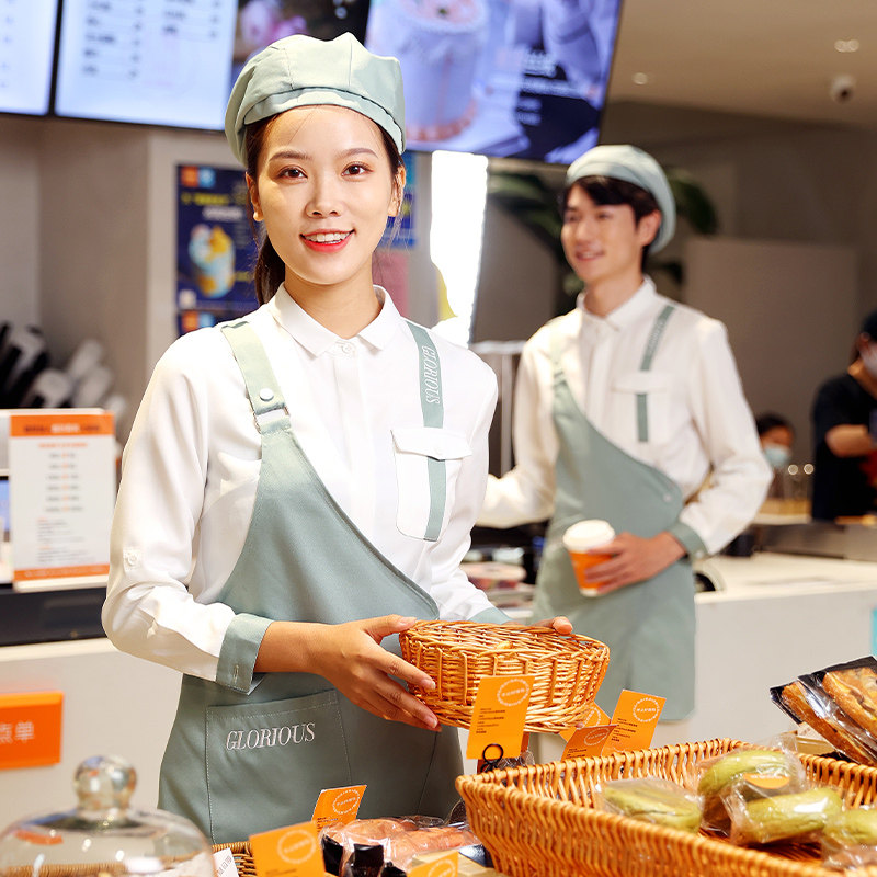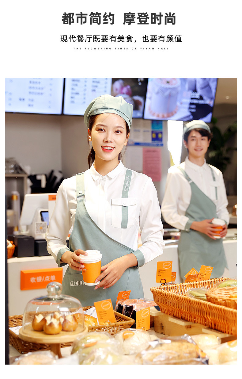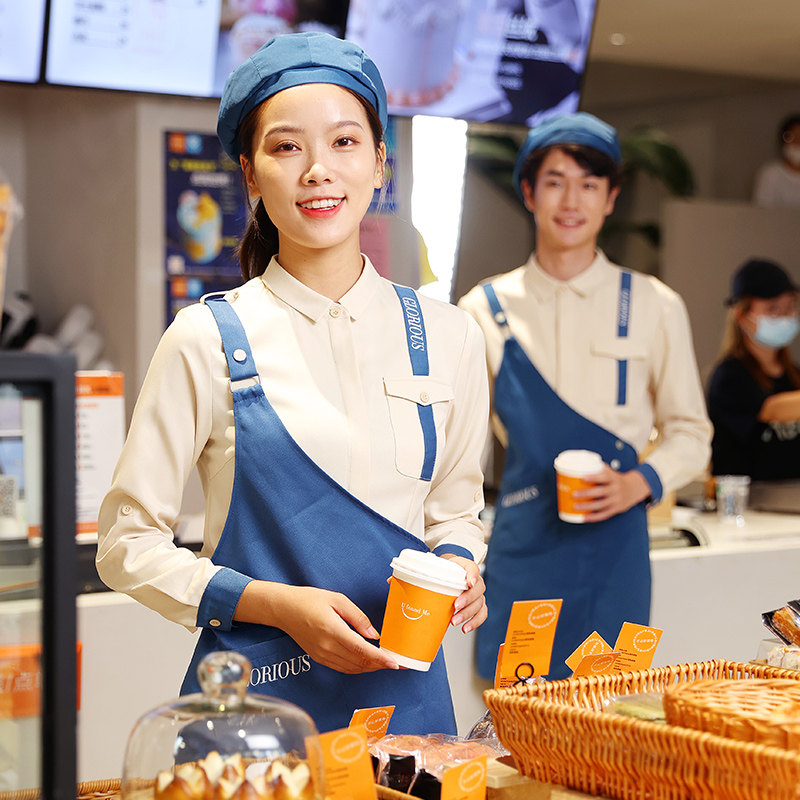 Рабочая одежда для общественного питания с длинными рукавами, женская модная одежда для ресторана быстрого питания, гамбургер, торт, чай с молоком, ресторанная одежда для официантов, осенне-зимняя одежда