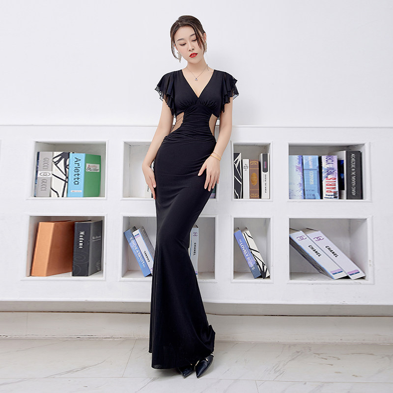 Сексуальное платье, длинная юбка, короткие рукава, низкоквалентный темперамент светского человека, женская одежда для ночного клуба, одежда для технической техники сауны, одежда для ног, выглядеть тонкой