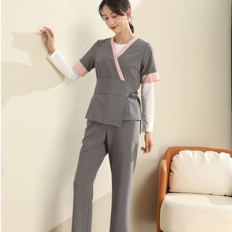 Старший салон красавицы, косметолог женский трудовой рабочую одежду, специалист по терапевтическому магазину серым терапии, серый темперамент, костюм с серединой рукава осень