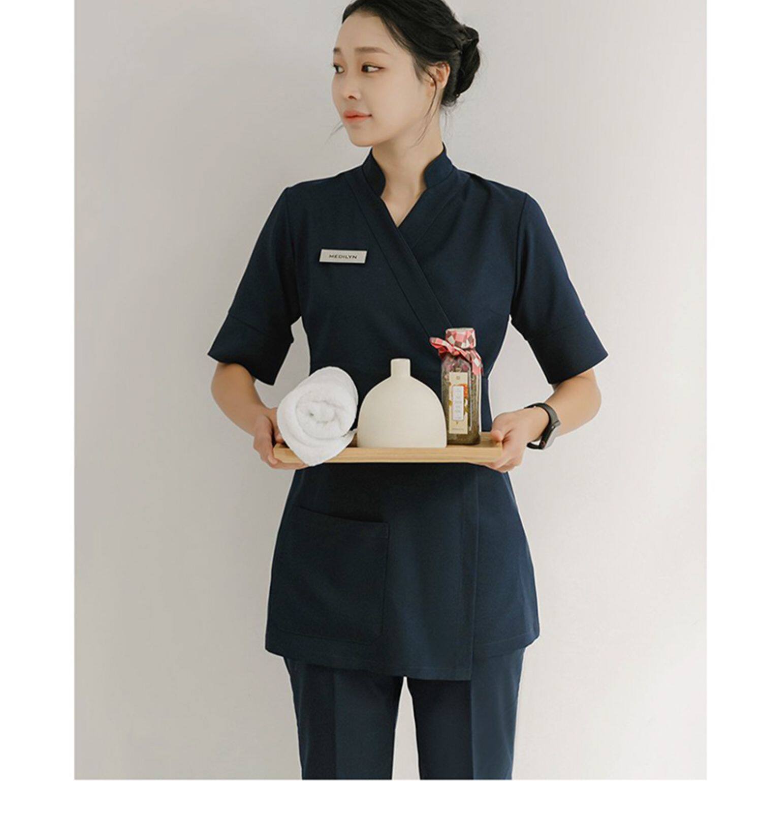 Массажер, тонкий косметический комбинезон, форма, штаны, короткий рукав, для салонов красоты