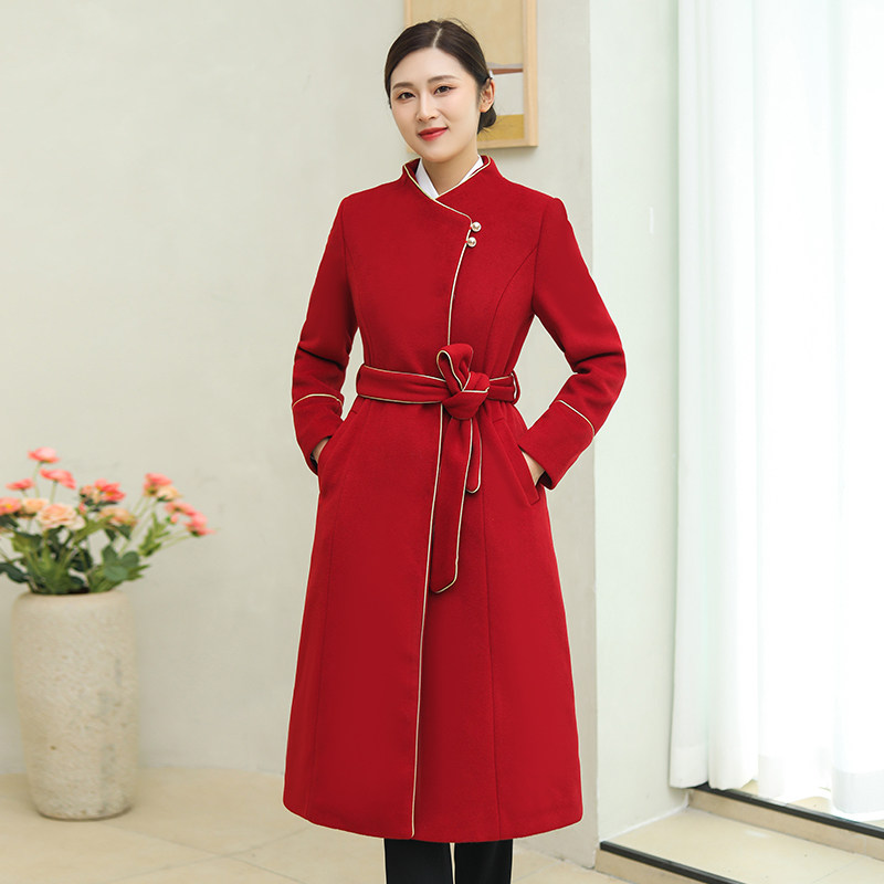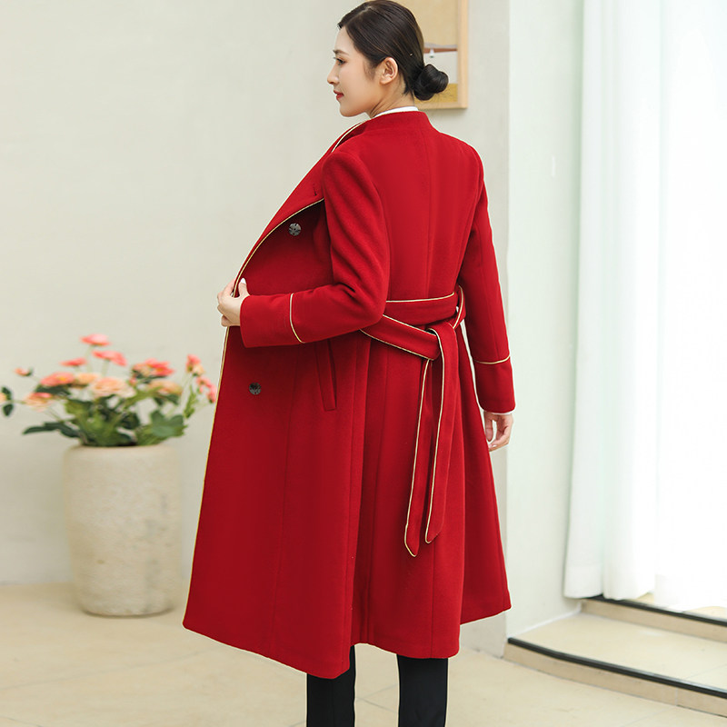 Бордовое шерстяное пальто, зимняя длинная куртка, униформа медсестры