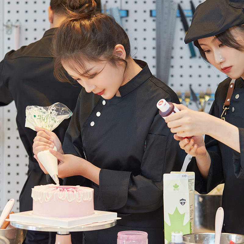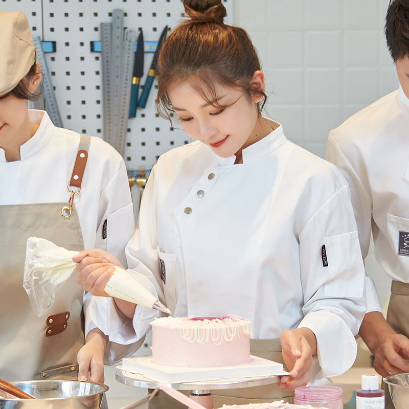 Выпечка рабочая одежда, длинные повара для общественного питания, декоративные декоративные женщины, декоративные женщины.