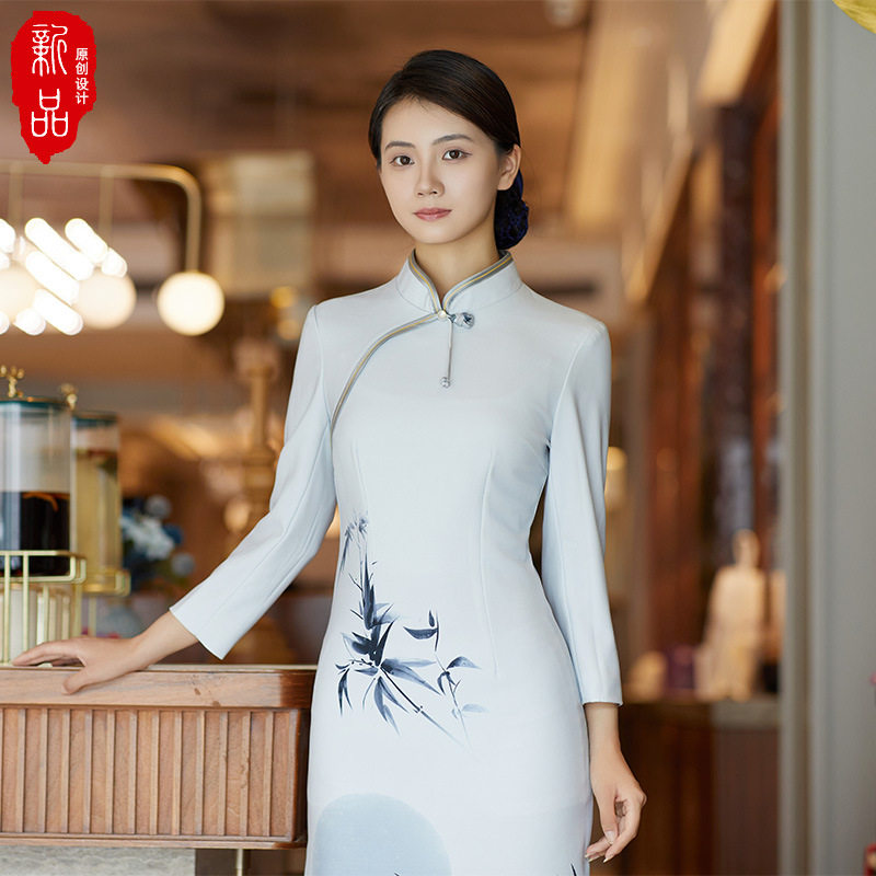 Ципао для работы для отеля, комплект, осеннее, китайский стиль