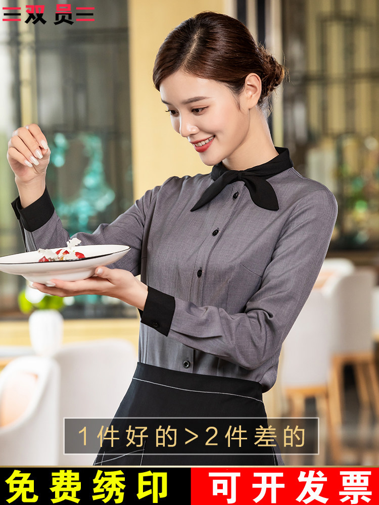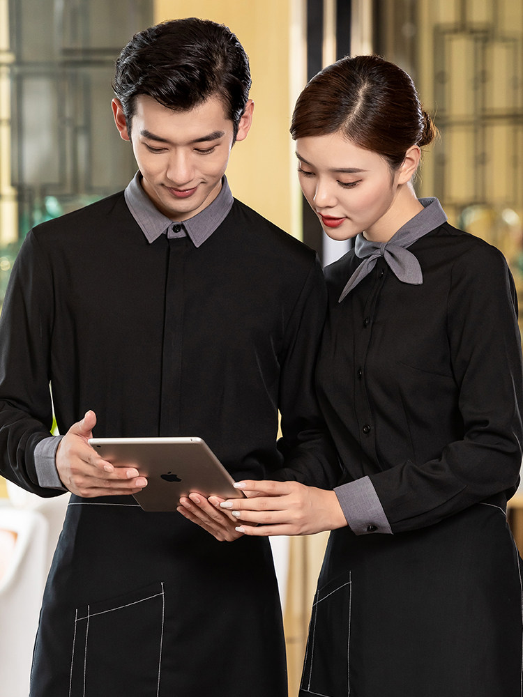 Кейтеринг официант рабочая одежда с длинными рукавами отель горячий горшок ресторан западный ресторан торт магазин чая с молоком весенняя и летняя одежда