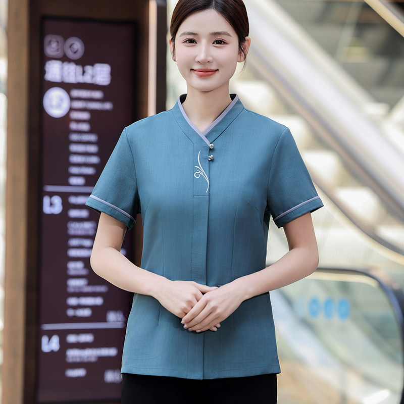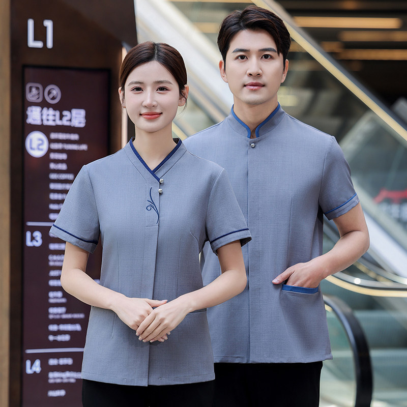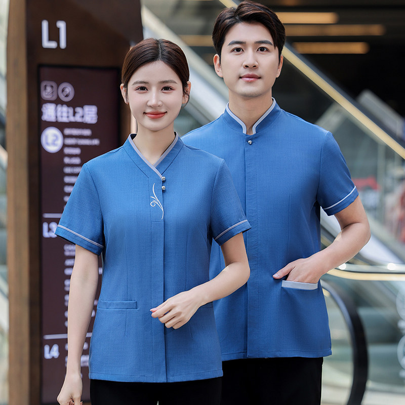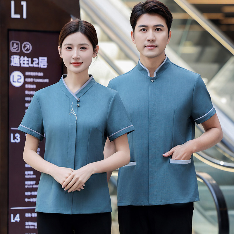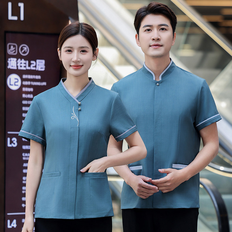Вышиваемая уборка рабочая одежда короткая -Летняя летняя мужская и женская отель гость гостевая комната отель торговые центры супермаркет школьная больница тетя