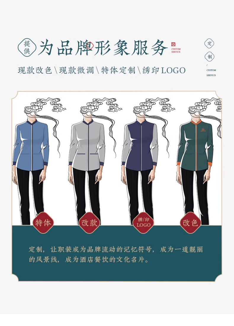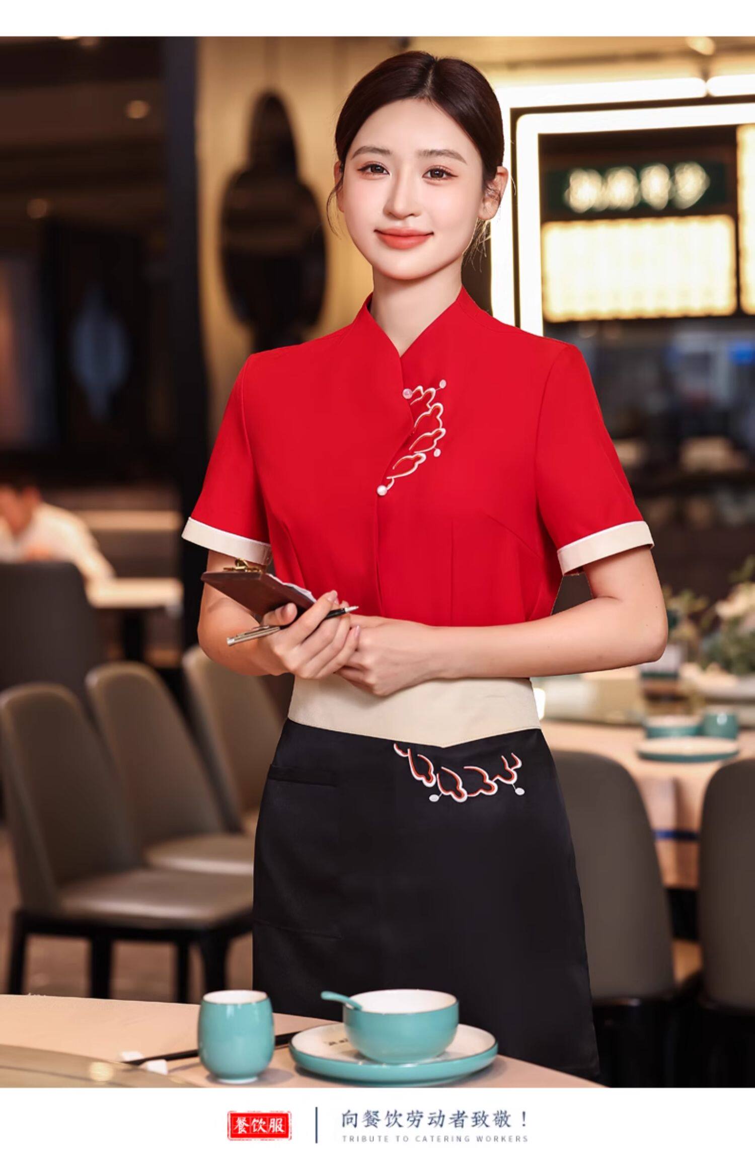 Женщина-китайский чайный ресторан Отель Официант рабочая одежда одежда в ресторан
