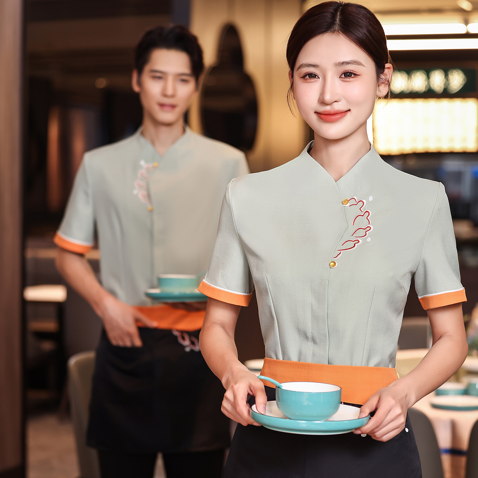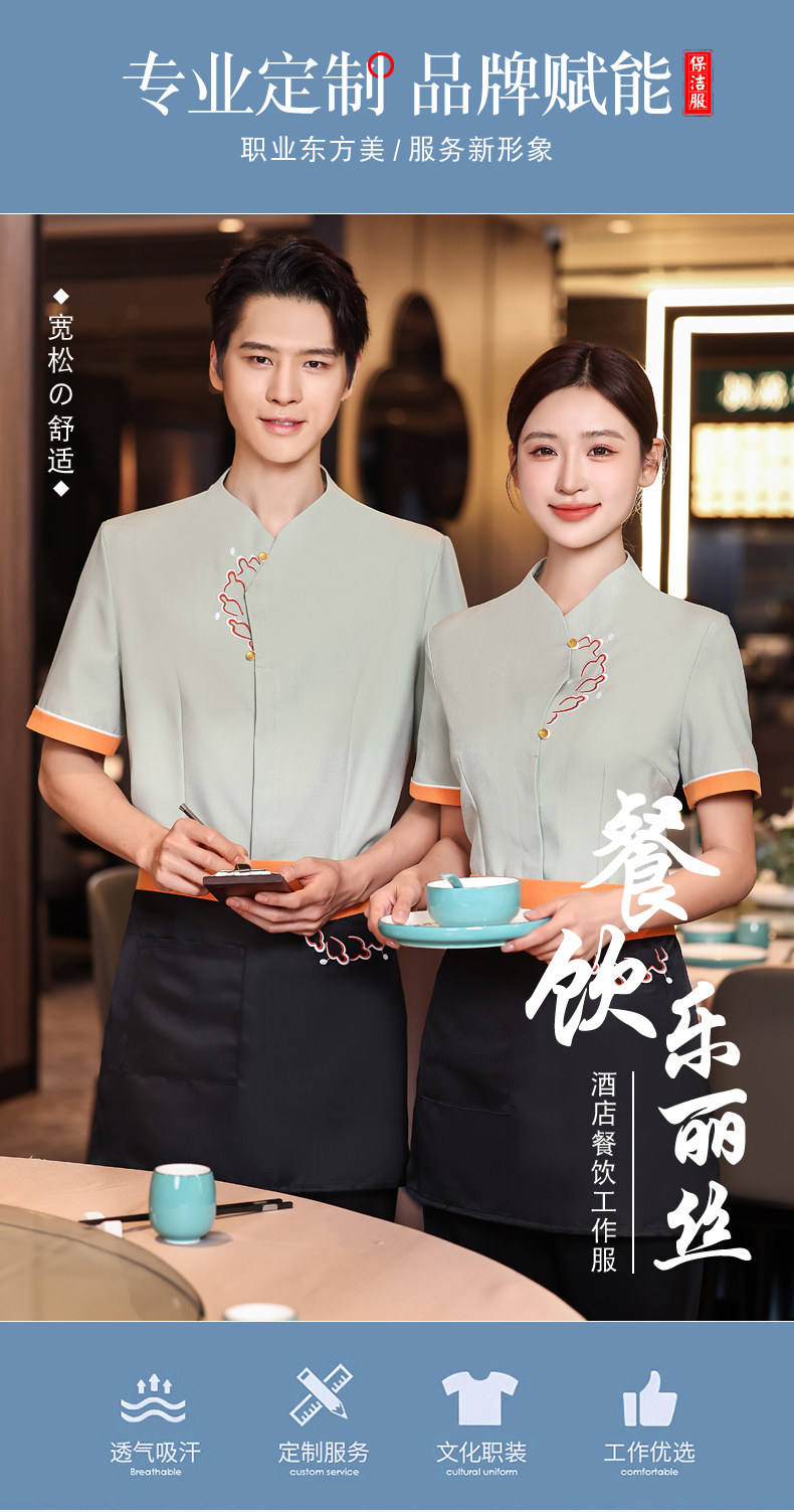 Китайский элитный горячий горшок ресторан ресторан общественного питания элитный отель официант рабочая одежда летняя мужская тонкая с короткими рукавами