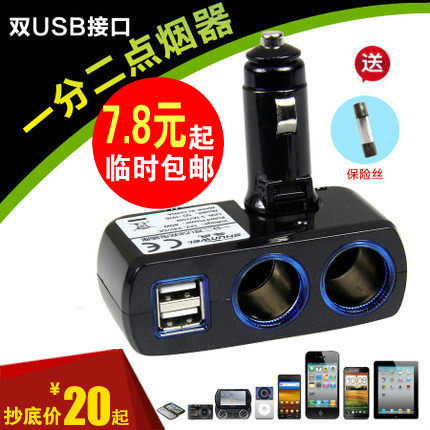 Shunwei Automobile One Trang Three Sigarette Lighters, один перетаскивание, два USB -автомобили, одно очко, одно -точковое многофункциональное автомобильное зарядное устройство