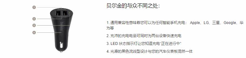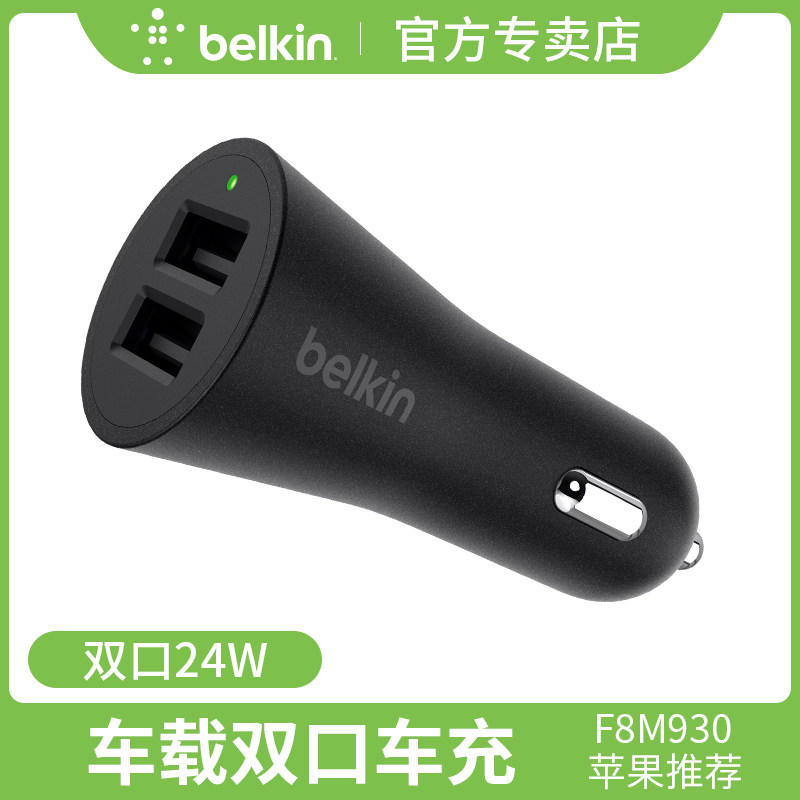 Belkin Bellkin Dual -Mouth Car Charger 24W Fast Charge Apple Universal USB -сигарета зажигалка
