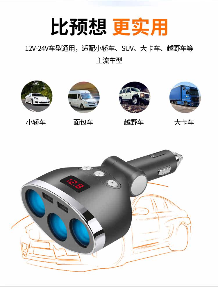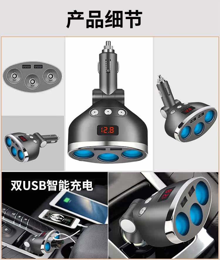 Автомобильное зарядное устройство, одно сопротивление, три, одно сопротивление, два -точечные сигареты зажигалка заглушка USB -мобильный телефон Многопрофессиональный автомобиль полоскание