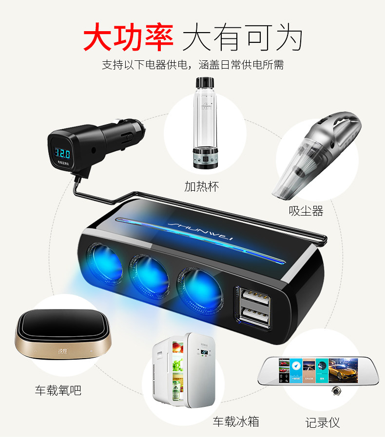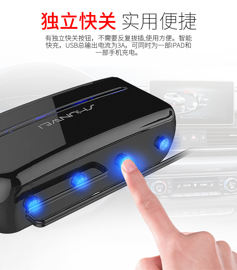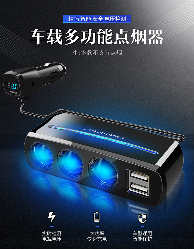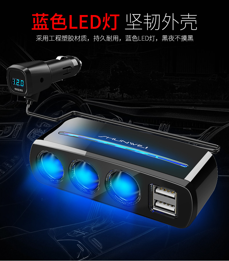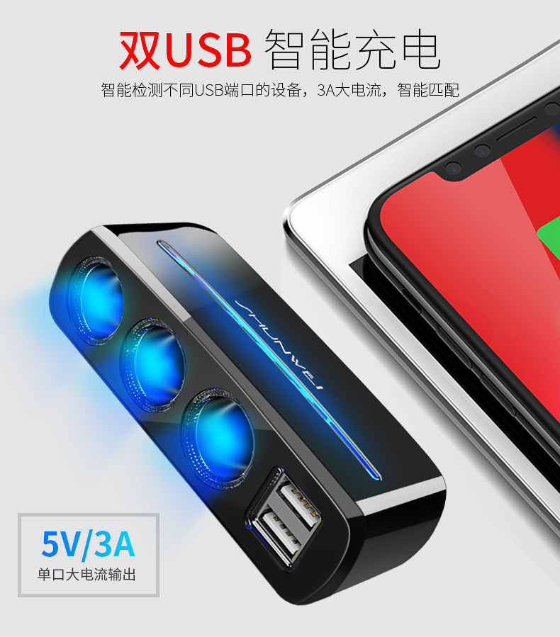Сигаретер один перетаскивает три много -функциональных переноса много -приспособленная USB -автомобиль One Trag Two Converter Then Carger Зарядное устройство