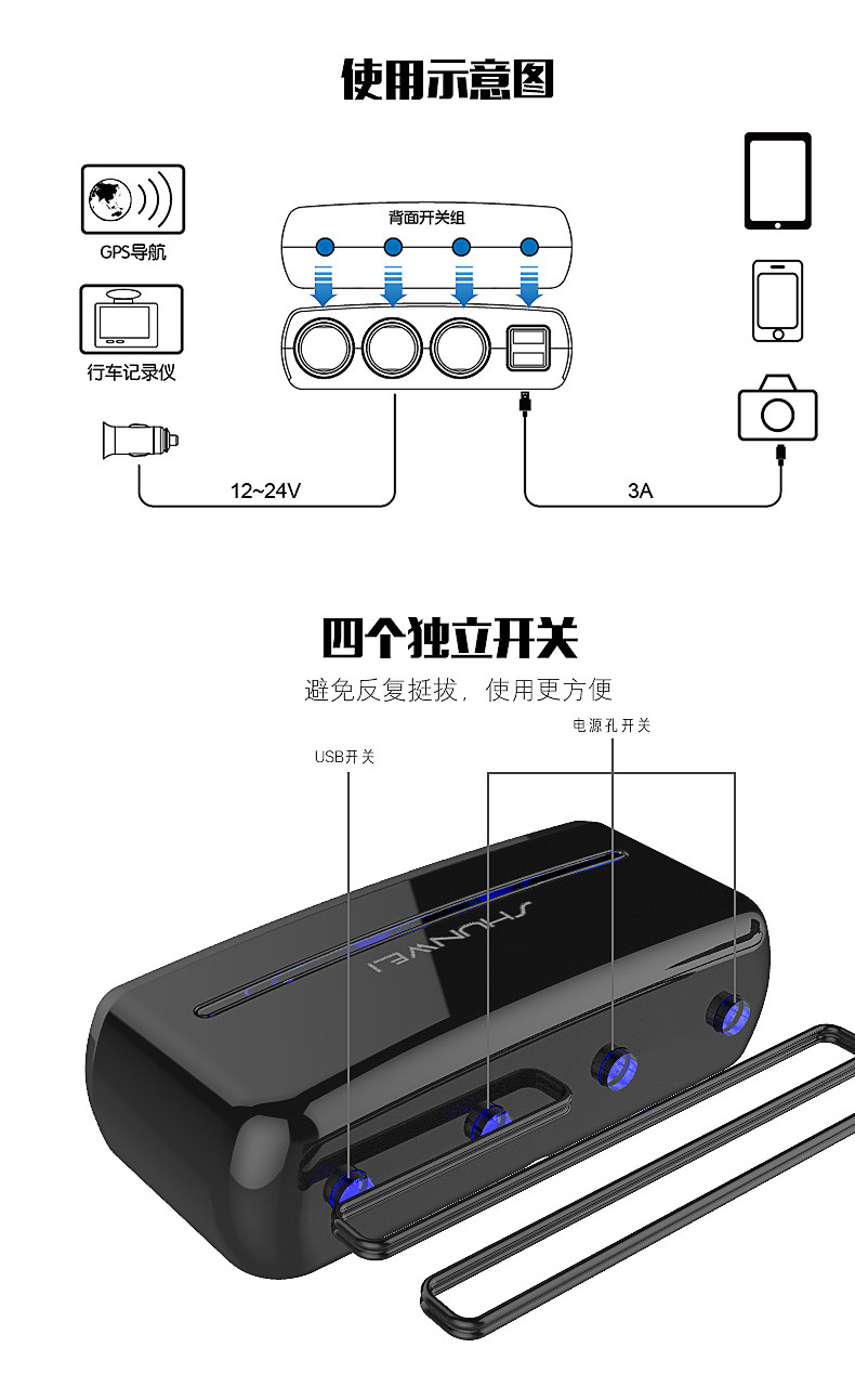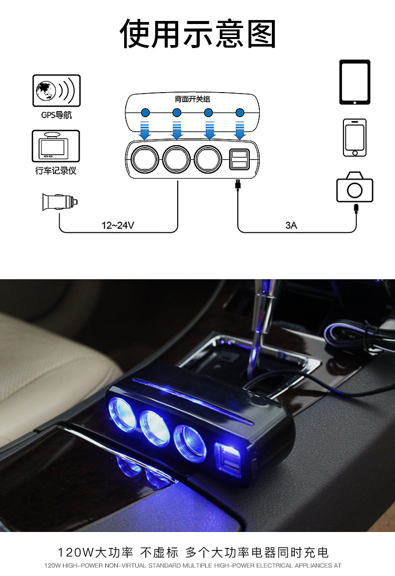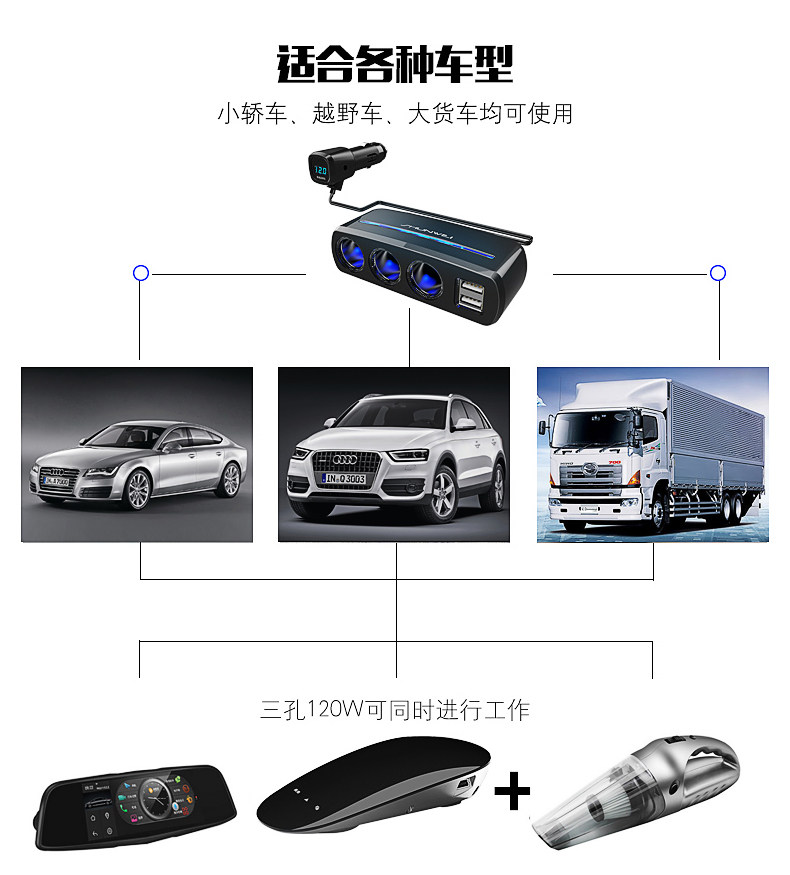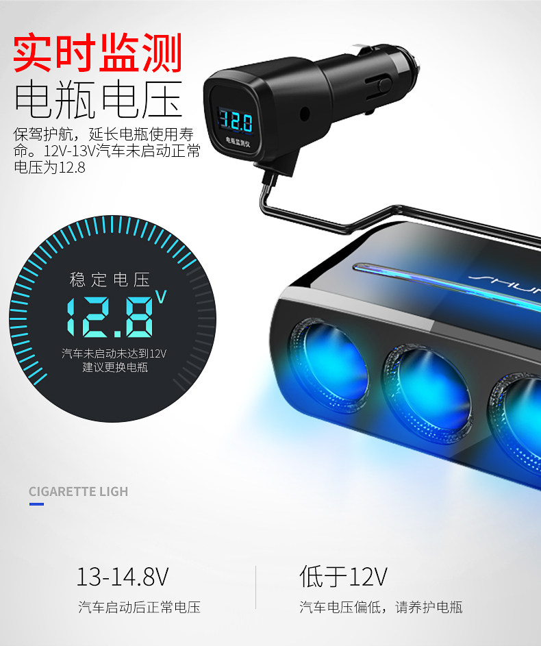Сигаретер один перетаскивает три много -функциональных переноса много -приспособленная USB -автомобиль One Trag Two Converter Then Carger Зарядное устройство