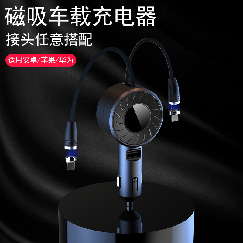 Автомобильное телескопическое зарядное устройство быстро зарядка флэш -зарядки сигарет зажигалка Один перетаскивание двух магнитных штепсец USB -интерфейс.